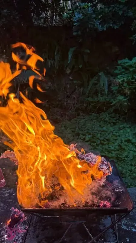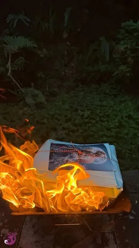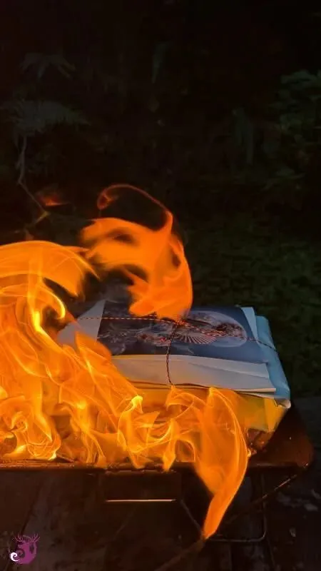 首先就是将个人仪式盘上使用的药草,与女神画像、符牌等等一起打包,准备火祭。