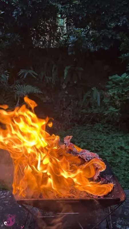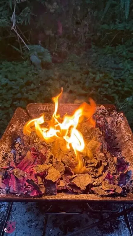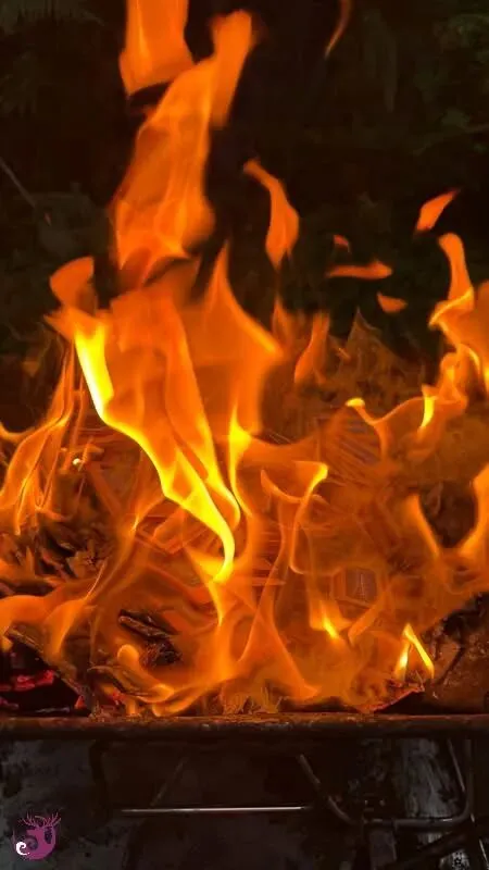 火祭时,我一邀请叶玛雅女神降临,山风便温柔吹起,带动神圣的火焰。而当我奉献药草包给女神时,火焰也温柔铺展开来,宛如女神温柔地拥抱了我们的药草,也拥抱了所有参与仪式的灵魂。