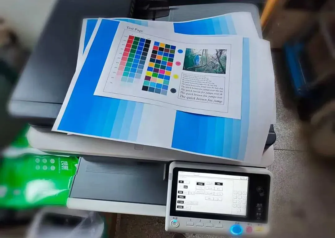 回想从前,看到如下图打印之现象,真不知从何处着手。那时对打印机尚且知之尚浅,何况乎彩色复印机。天方夜谭。