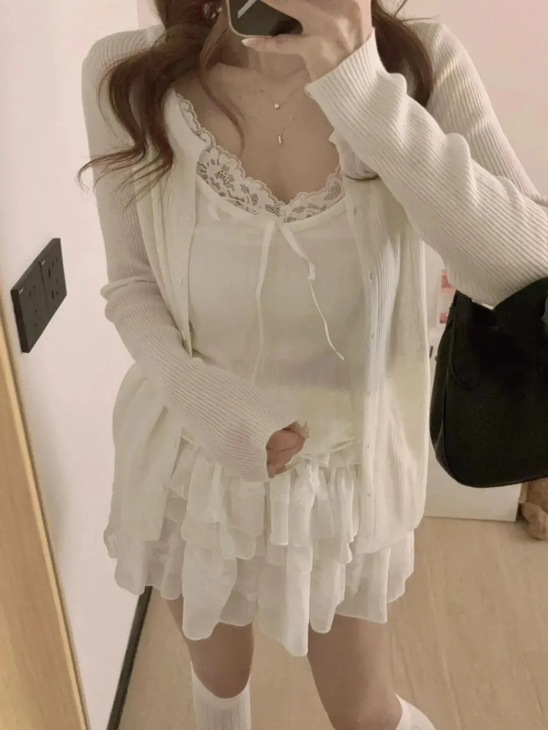 当前位置:首页>美女资讯>“白色针织开衫 + 蕾丝蛋糕裙” 太绝了!纯欲甜妹风直接封神