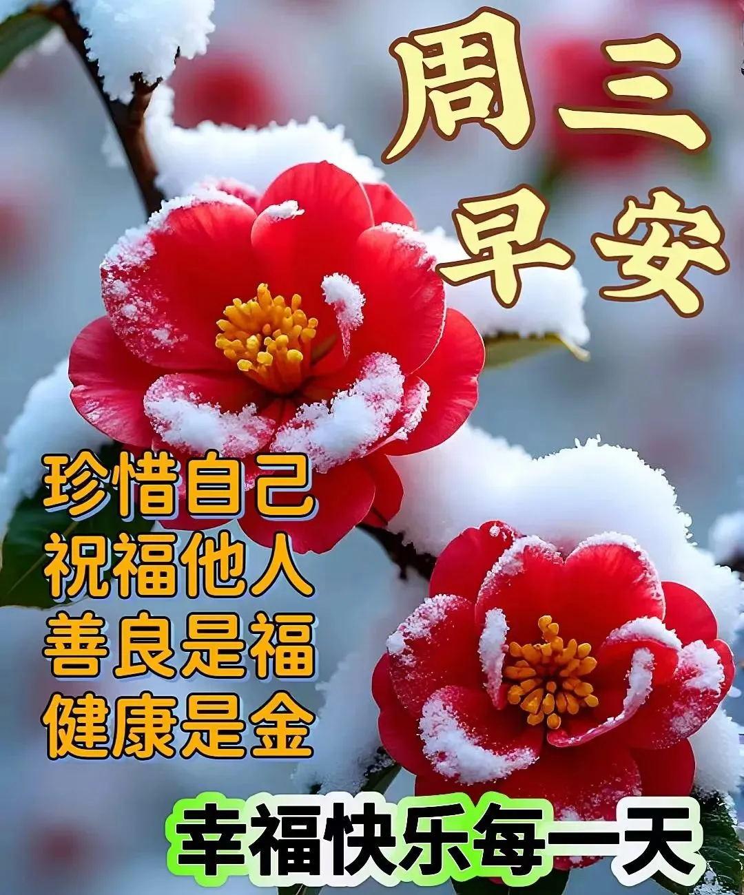 5、🌨️💖🙏 一场冬雪一场寒,一句祝福暖心田。暖暖阳光,默默照耀;平淡日子,慢慢前行,得失皆随心。愿大家在这个冬天,生活满是温馨,事业顺遂吉祥,心情开朗如冬阳!早上好!🥳🍀🌞