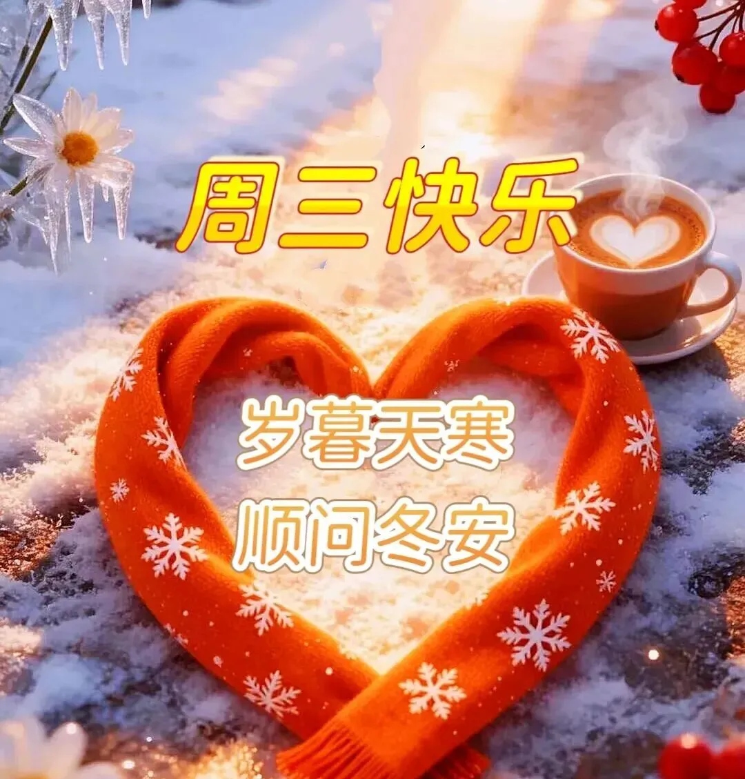 周三到❄️,牵挂到🤗,天气愈渐寒冷🥶,思念愈发深切💕,远方的朋友你可安好👀?天寒记得添衣保暖🧥,降温注意防寒御冻☃️!冬日的暖阳是我对你的问候☀️,飘飞的雪花是我对你的祝福❄️。傲雪的腊梅🌼,为我送去沁人的芳香🌸,周三到了,愿你健健康康💪!