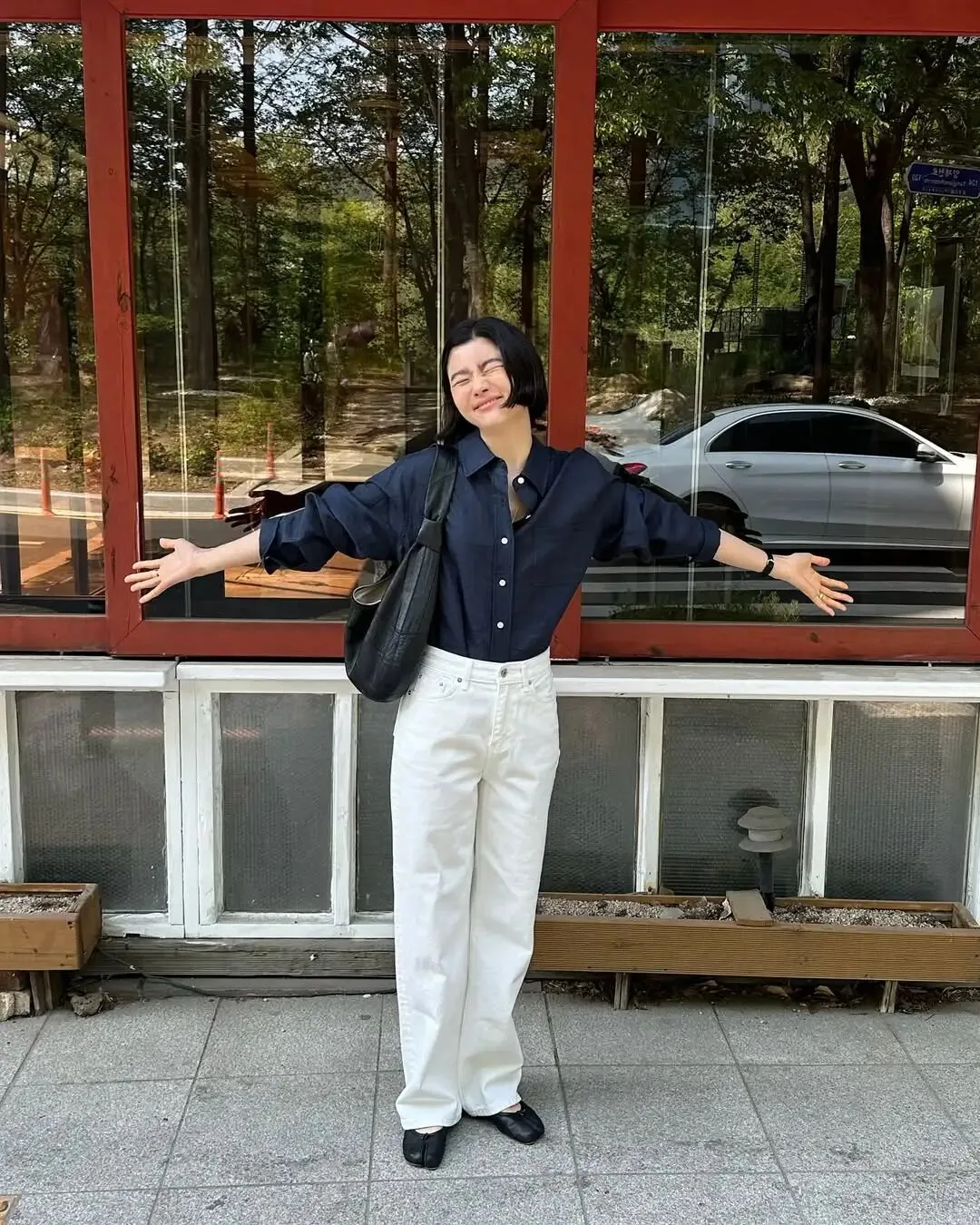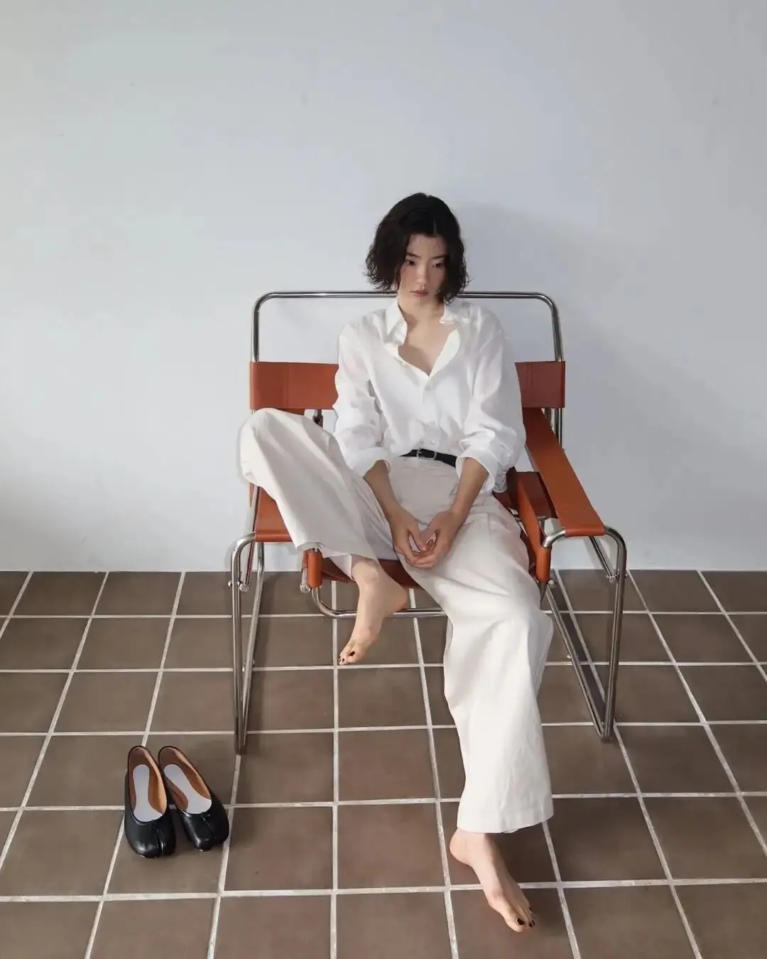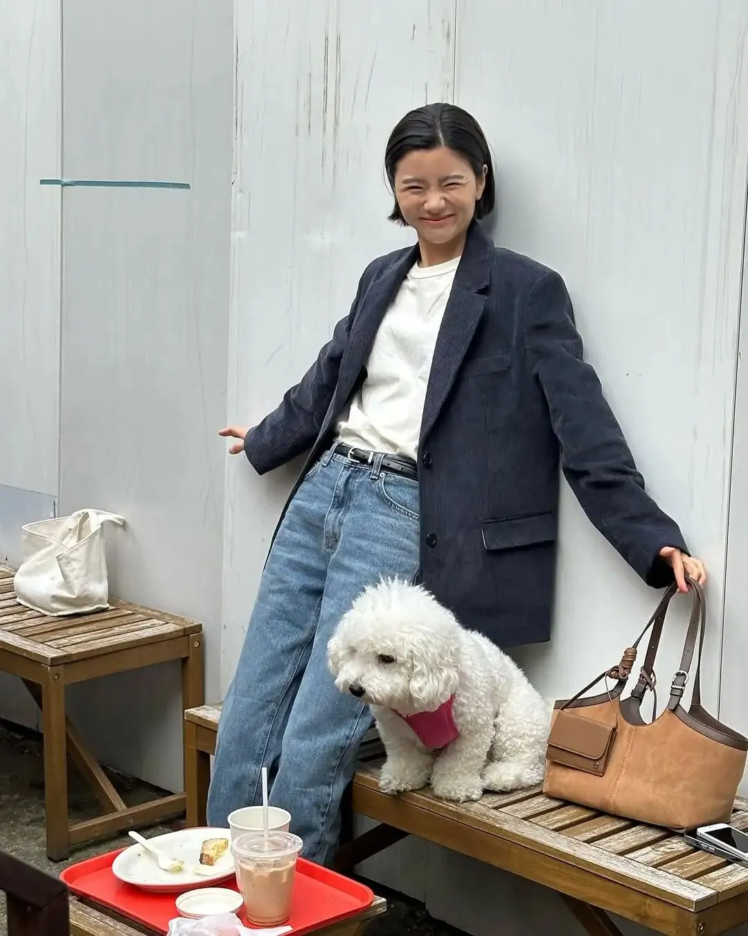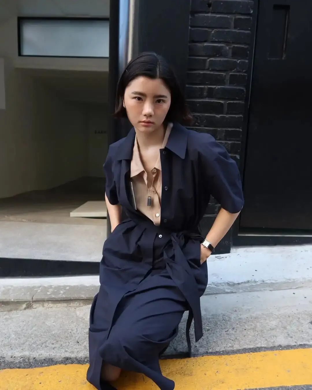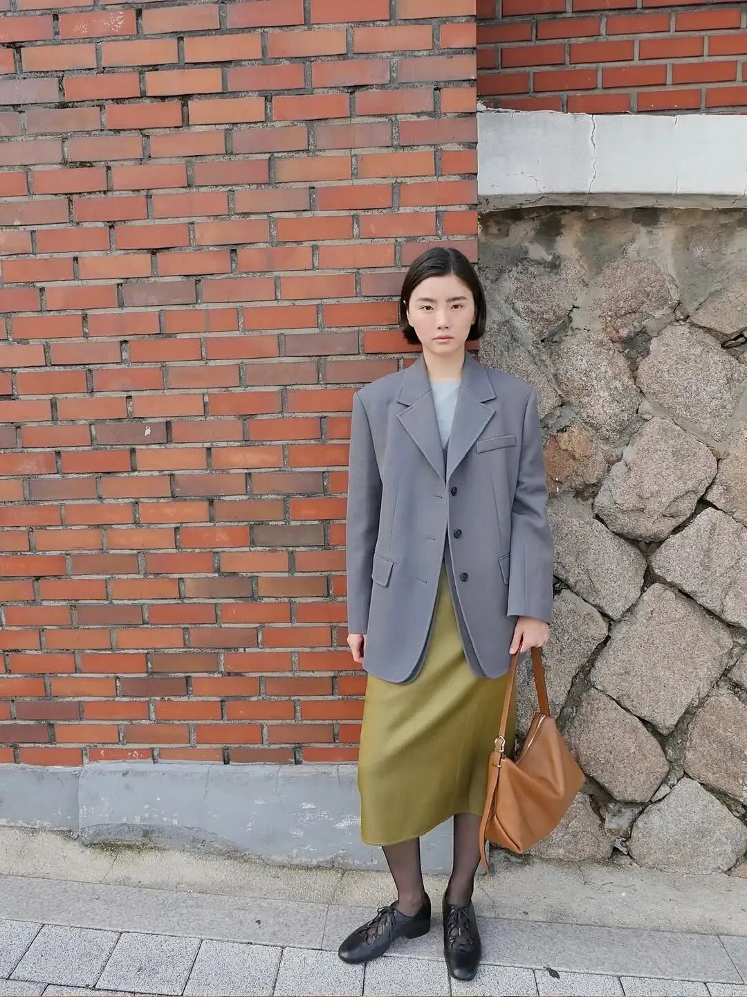 每次不知道上班该怎么穿的时候,我都会去翻一翻韩国博主riri的ins,整齐的短发,没有浓妆的淡颜,只用基础款搭配基础款,营造出职场利落干净的氛围。