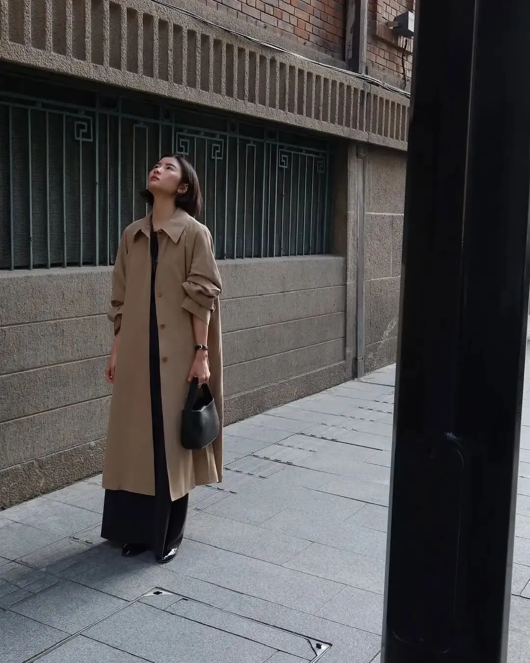 长款大衣和风衣虽然是职场中提升气场的经典单品,但是对小个子而言并不太容易驾驭,其实解决方法也很简单:敞开穿!或者用围巾、腰带来转移视觉中心。