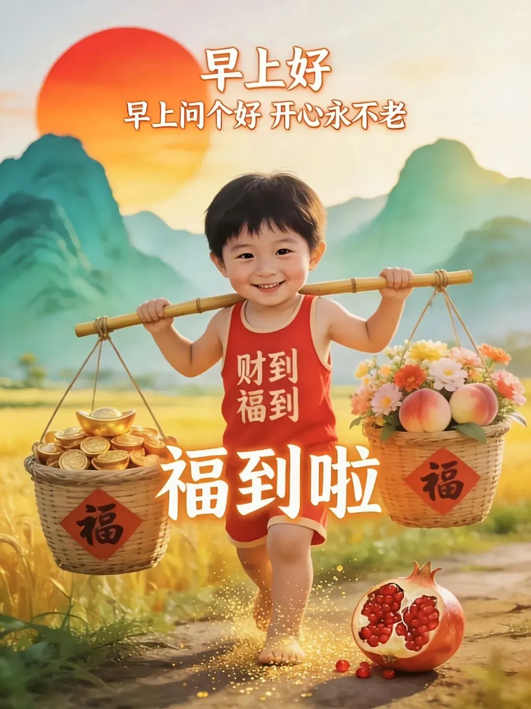 新的一天,新的开始,有一种问候,叫平安!有一种祝福,叫健康!有一种陪伴,叫幸福!祝大家财到、福到、好运到!祝大家身体健康,事事如意,福满全群!