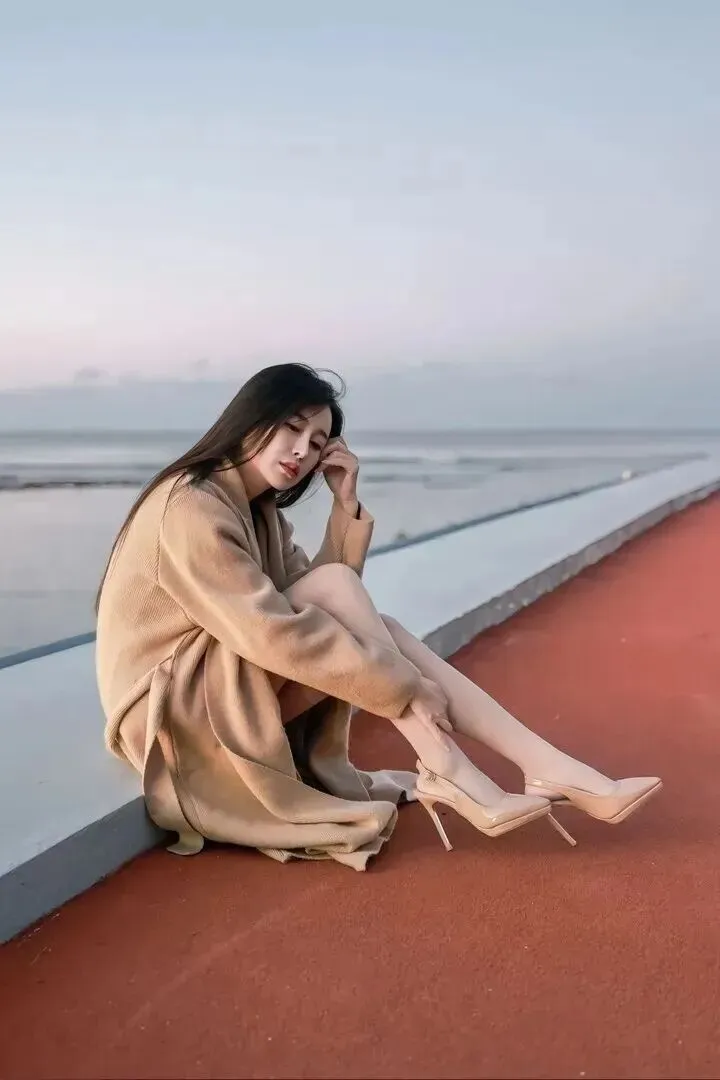 .坐在长.椅上休息时.,风.衣下摆铺.在腿上像.条毯子。她.翘着腿,高.跟鞋.的鞋跟.轻轻点地,.这个不经.意的小.动作特.别有女人味.。整个人.看起来放松.又优雅。