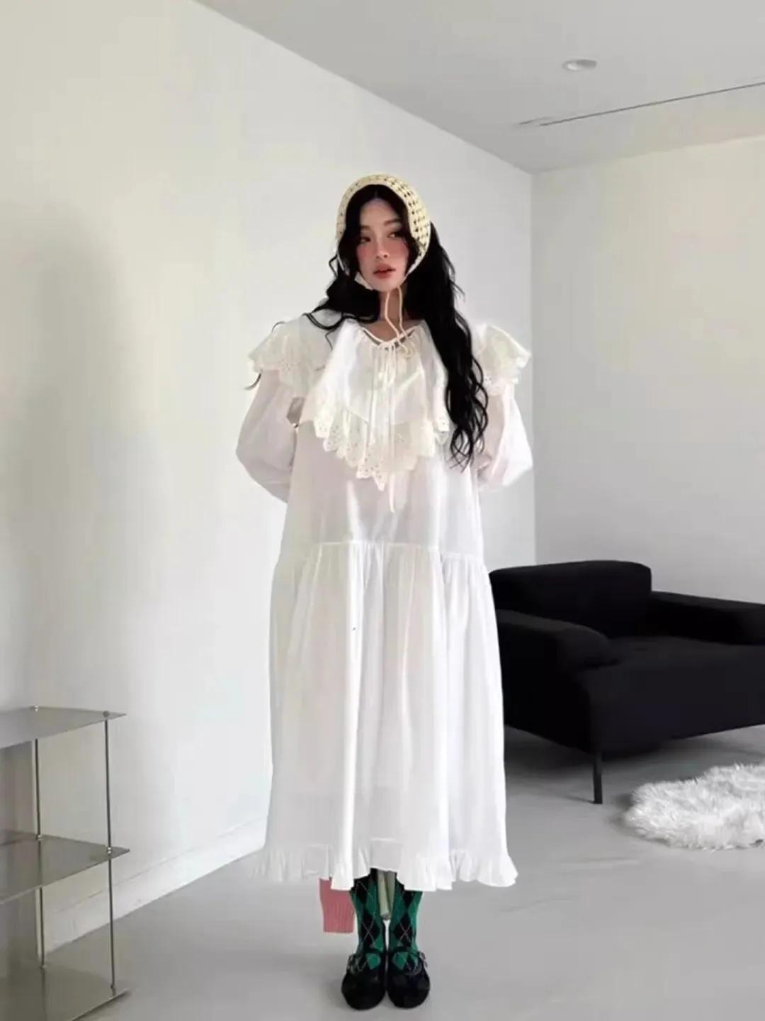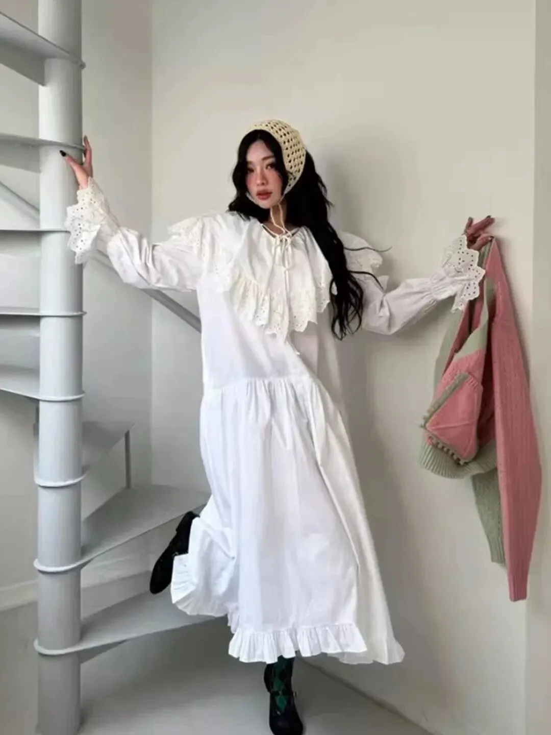 长袖的设计不仅适合当下的季节,还能巧妙地遮住手臂上的肉肉。裙摆宽松飘逸,长度到脚踝,走动起来裙摆轻轻摇曳,宛如仙子下凡。而且这种宽松的版型对各种身材都很友好,完全不用担心显胖的问题。