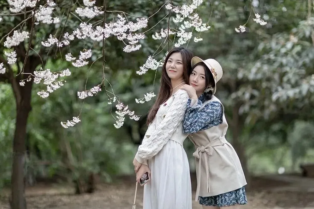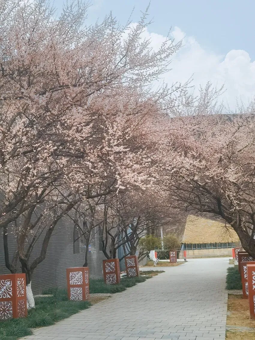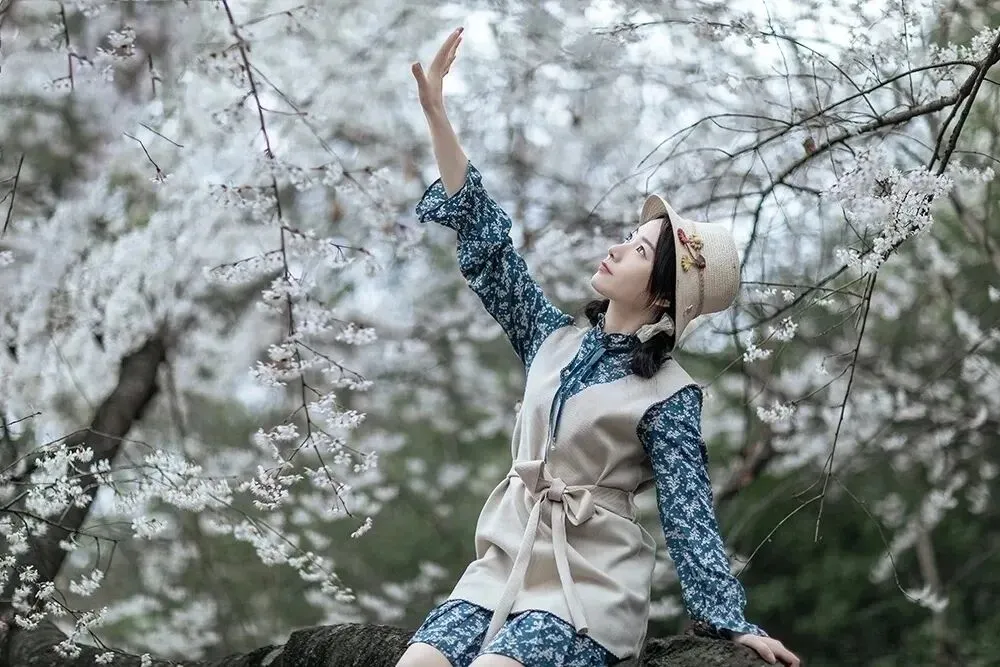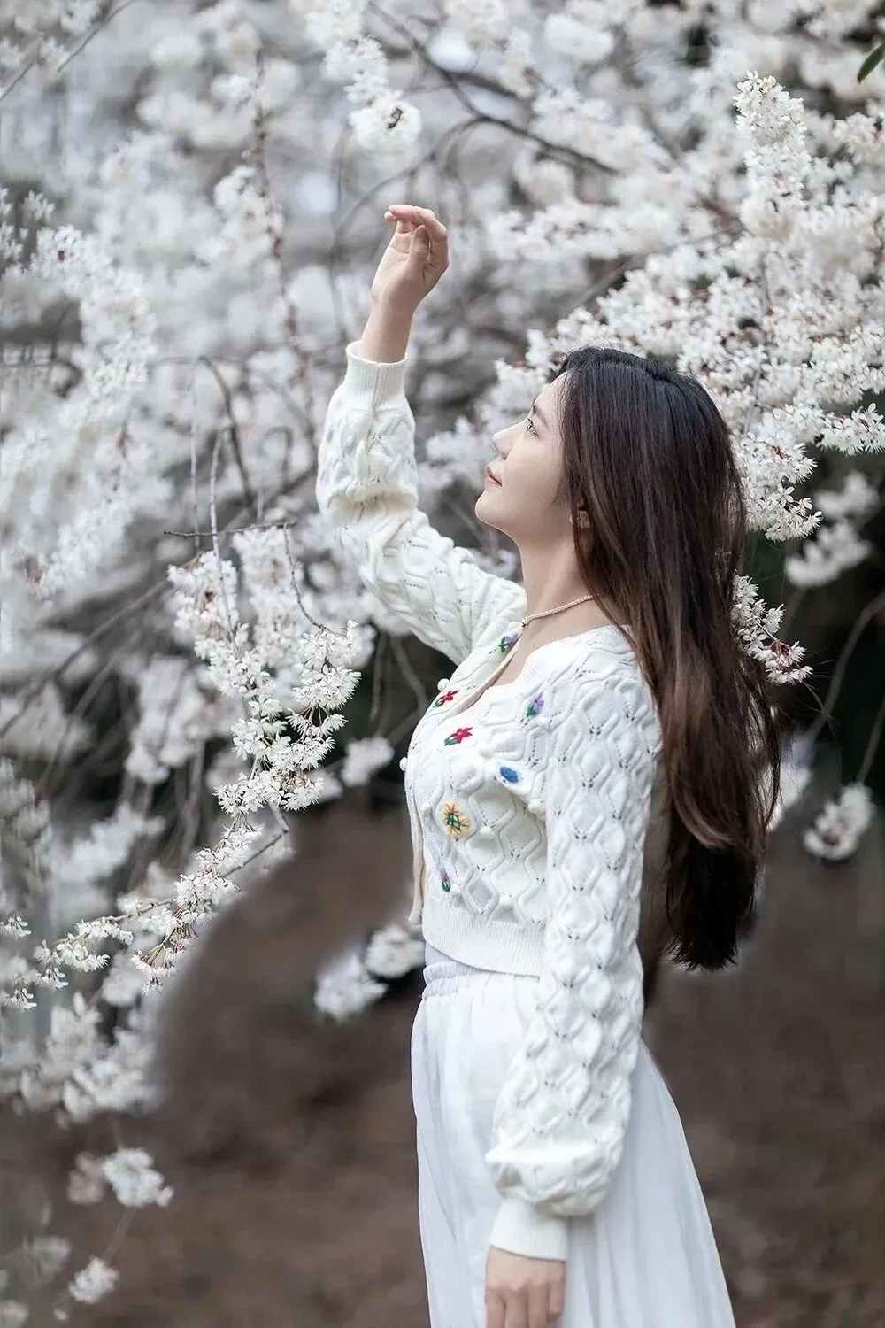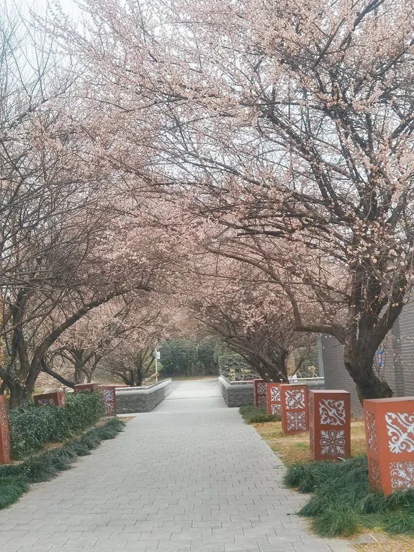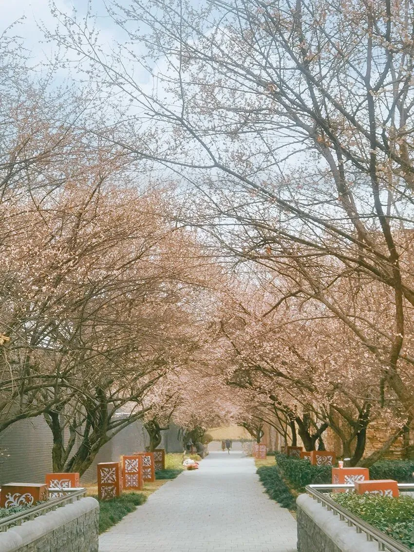 主题:漫舞樱雪下,奔赴一场春日之约,绵延几十米的白色樱花长廊,花枝低垂如云似雪