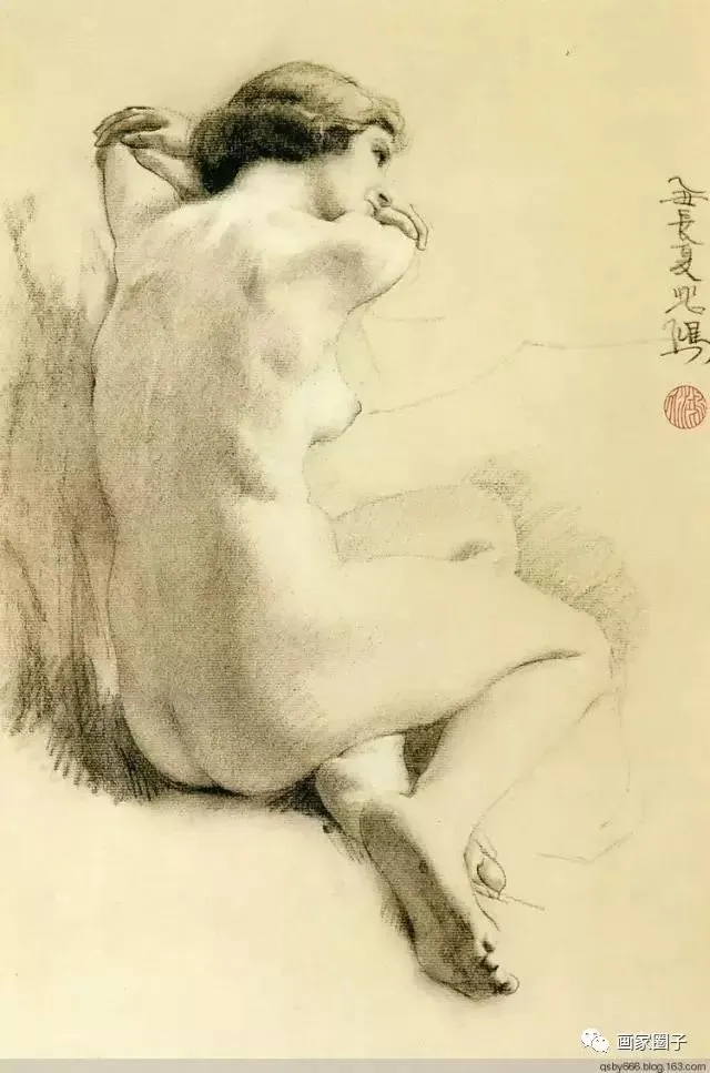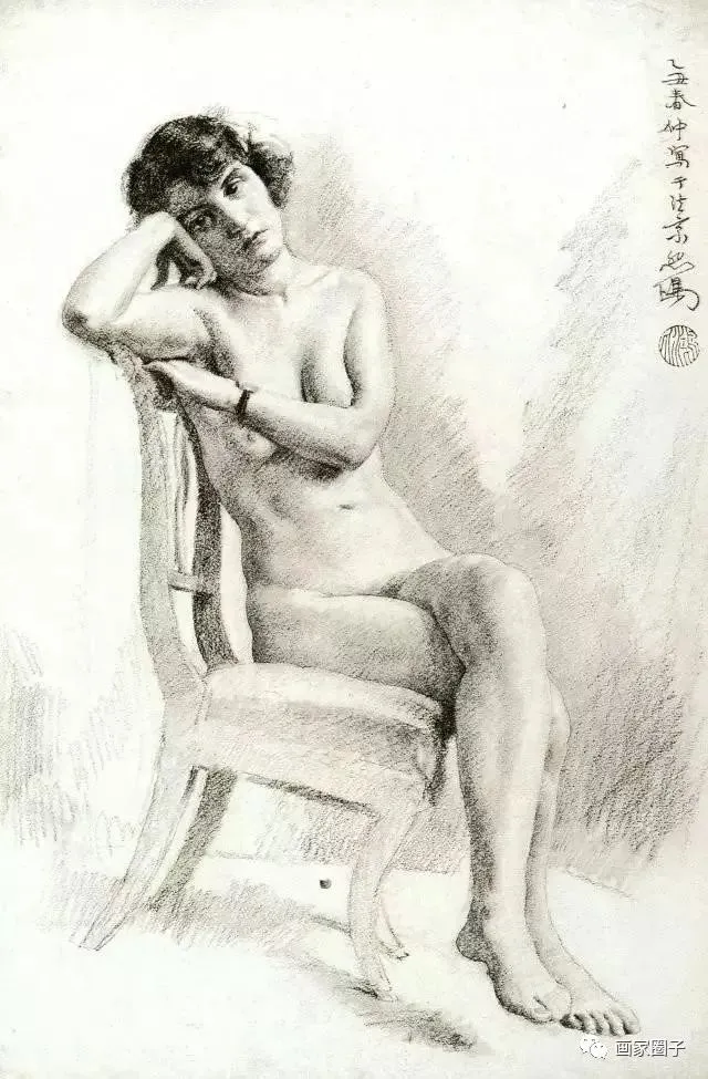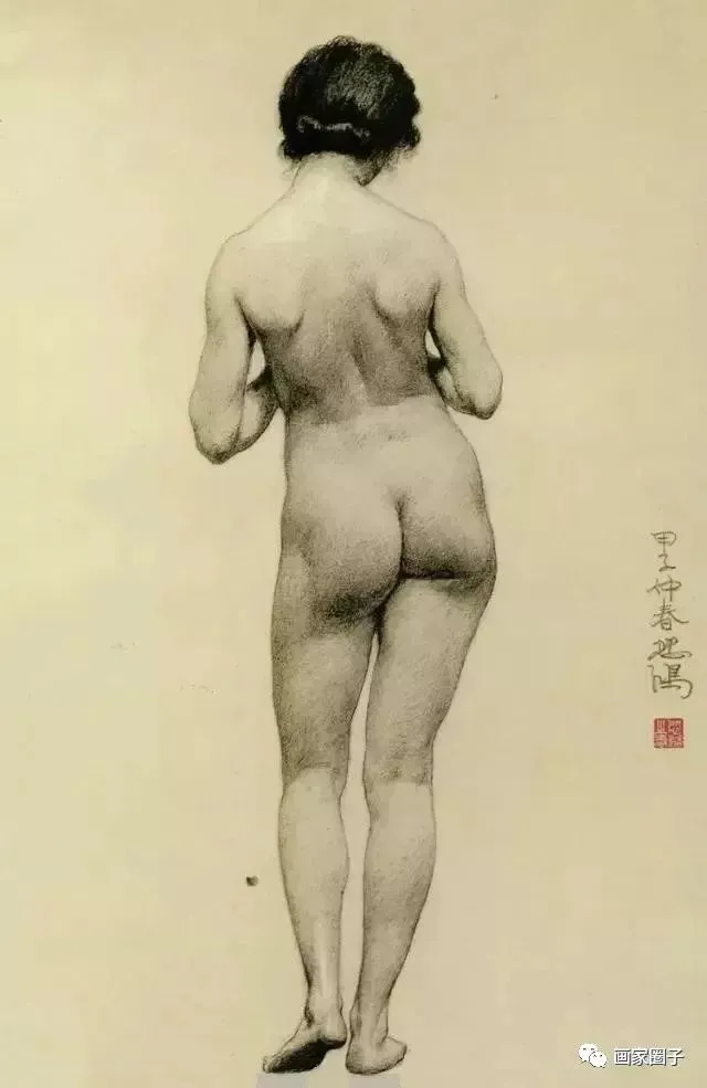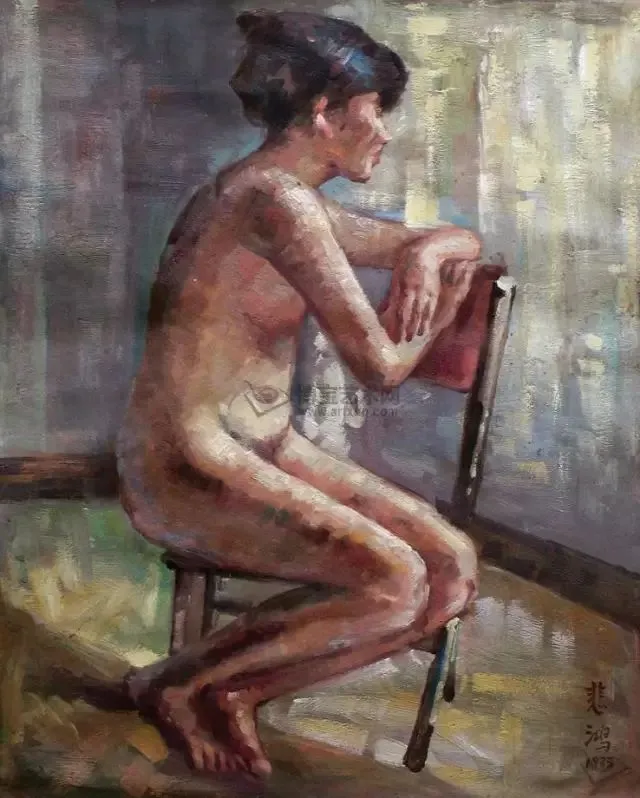 徐悲鸿先生的油画基础训练是通过大量的人体写生进行的。他的油画人体习作造型严谨精确,动作姿态典雅优美,完全显示出这位大师掌握形体运动的优美规律,光和色的巧妙安排和运用像诗一样富有音韵感。