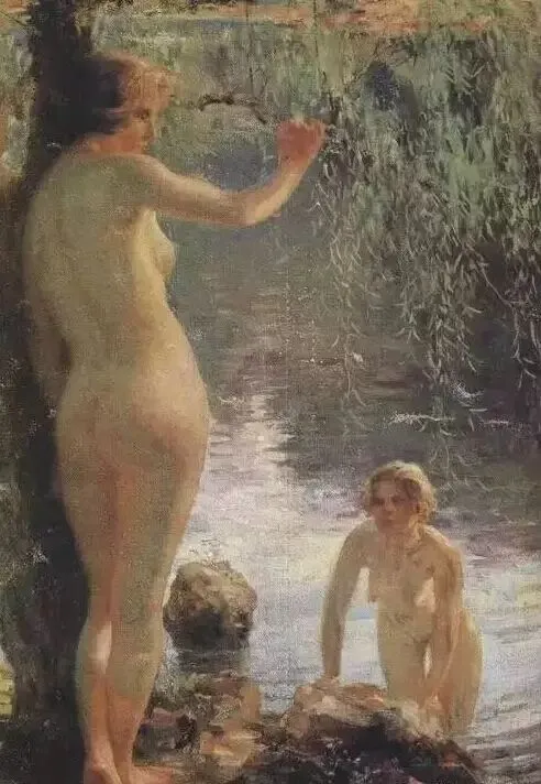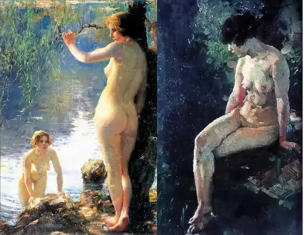 为了探求人体微妙的色彩变化,他解开了人体上运用紫色和绿色的难题,使他的作品色彩斑斓、熠熠生辉,进入崇高的艺术境界。他不仅做到裸体模特儿外表形似,还深入到皮下和肌肤里层的描写,显示脉络和血液的流动,赫然画出有血有肉有生命的躯体。他继续探求,倾注画家的意想和情思,在他笔下的模特儿,表现出安谧、寂静、深沉、含蓄、隽永、柔和、刚劲等多种崇高的美的意境。