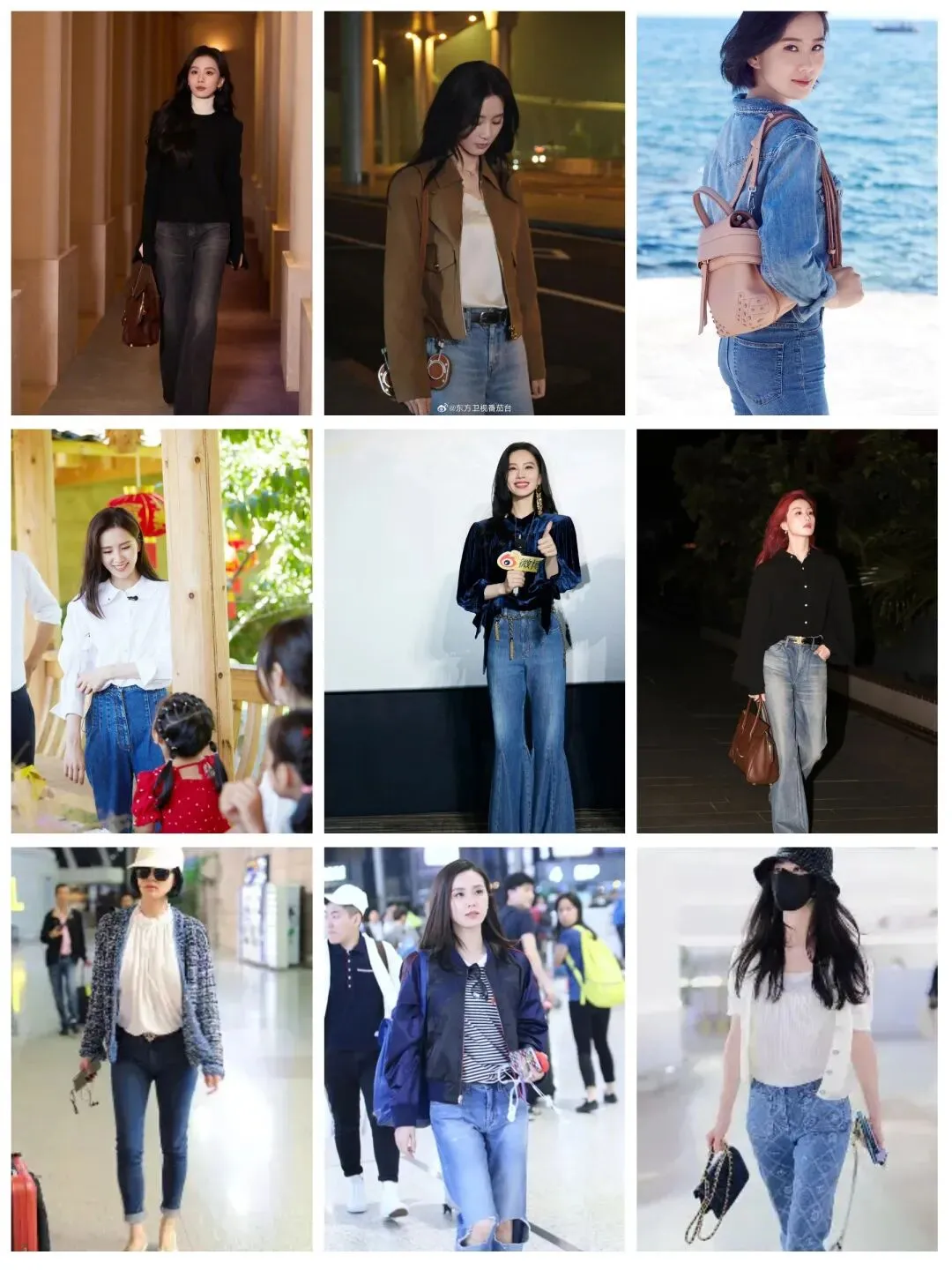 记忆点 12:牛仔简装 —— 日常里的随性松弛近年私服造型,她的私服以简约舒适为主,牛仔裤出镜率极高,搭配白 T 恤、针织开衫或休闲外套,随性又不失格调,尽显成熟女性的松弛感与温柔气质。