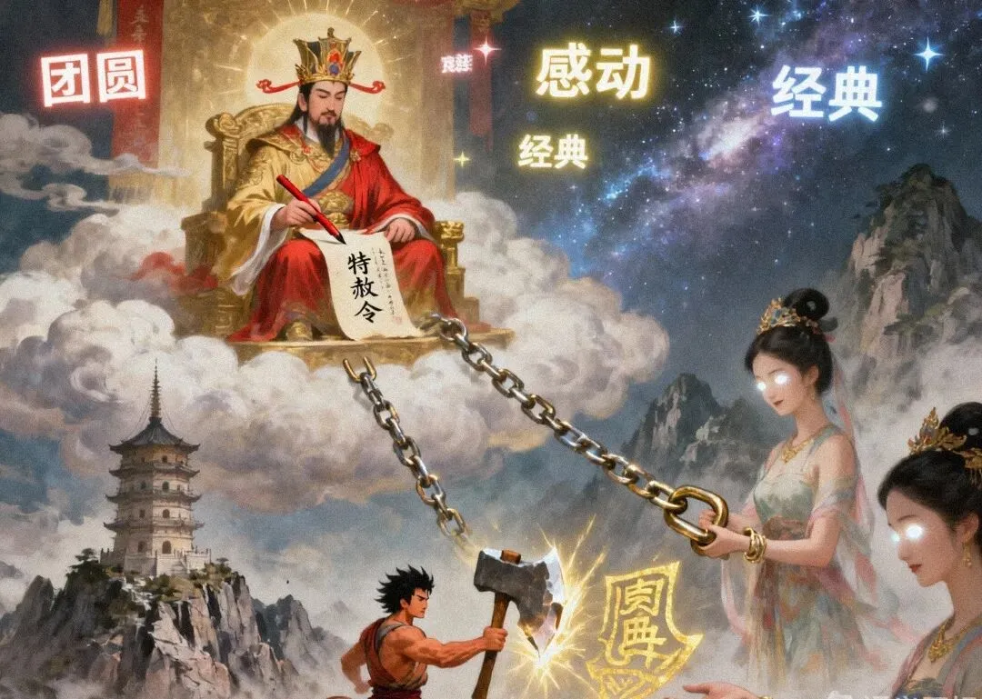 于是,女性的痛苦被压缩成“爱情传奇”的素材,供人消费、感动、遗忘。男性成了“无辜承受”的受害者,而真正的压迫者(天庭、佛律、父权)隐身于幕后,甚至被美化为“不得已的秩序维护者”。