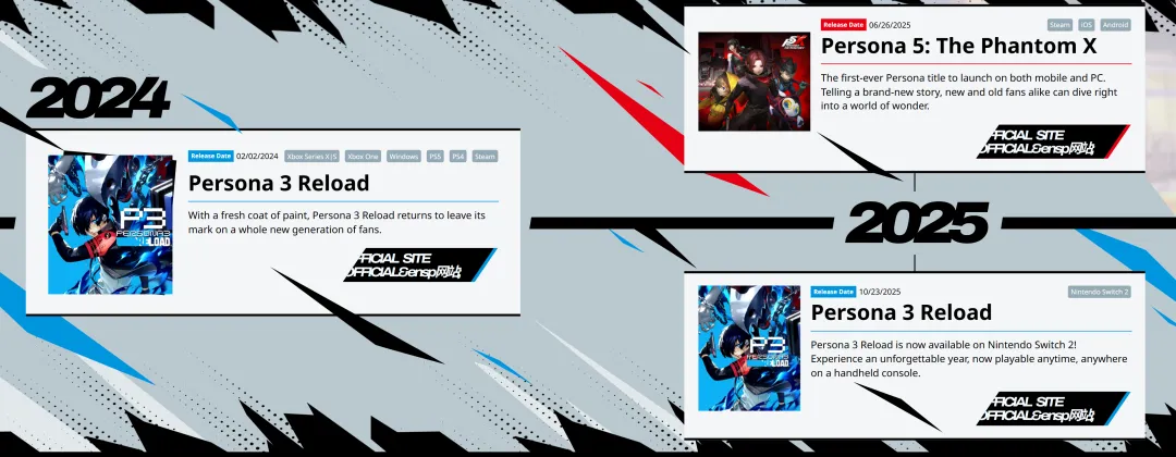 另外周年活动方面,官方同步预告大型交响音乐会、限定周边商城与珍稀藏品抽选,具体日程与售票信息将于2月公布。游戏方面,《Persona 4 Revival》确认开发中,登陆Xbox Series X|S、Win11商店、PS5与Steam,并将首日加入Game Pass;《Persona 5: The Phantom X》欧美服已正式上线,PC端可在Steam免费下载,iOS与Android端亦同步开放。Atlus强调更多30周年企划将在年内陆续公开,后续看看还有什么新内容吧~~