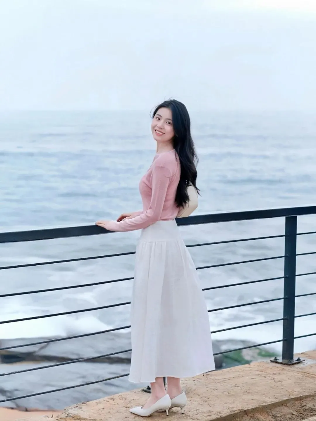 那一刻忽然懂得,海边穿搭从不是要穿得多么花哨,而是让自己融入风与浪里,成为风景的一部分。这套粉白配就藏着 “温柔与松弛两全” 的美感,不用靠配饰堆砌,单穿就足够好看。你本来就该,穿得舒服又温柔地,接住生活里的每一阵海风。