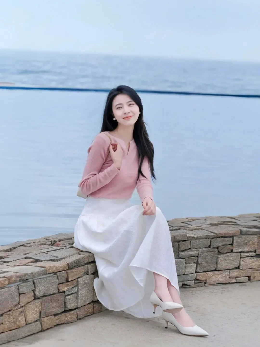 谁没试过 “想穿温柔、穿成游客” 的粉白配?尤其去海边,要么粉得扎眼像网红打卡,要么白得单调像路人,总难穿出松弛氛围感。上周穿这套去海边咖啡店,刚在石墙长椅坐下,旁边女生就笑着拍我肩膀:“你这粉白配像把海风揉进了衣服里,能发个链接吗?”