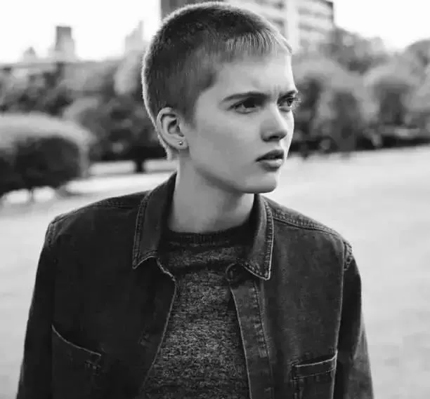 其实,发型只是表面,重要的是你敢不敢突破。你说板寸头难打理吗?其实夏天出汗,头发没那么闷,反而舒服。冬天戴针织帽也不会塌,脱了帽子照样帅。要说hold不住?你看Ruth Bell脸型圆圆的,没什么“模特脸”那种刻板棱角,照样帅出新高度。谁规定短发就不女性化,谁说年纪大了就不能尝试?