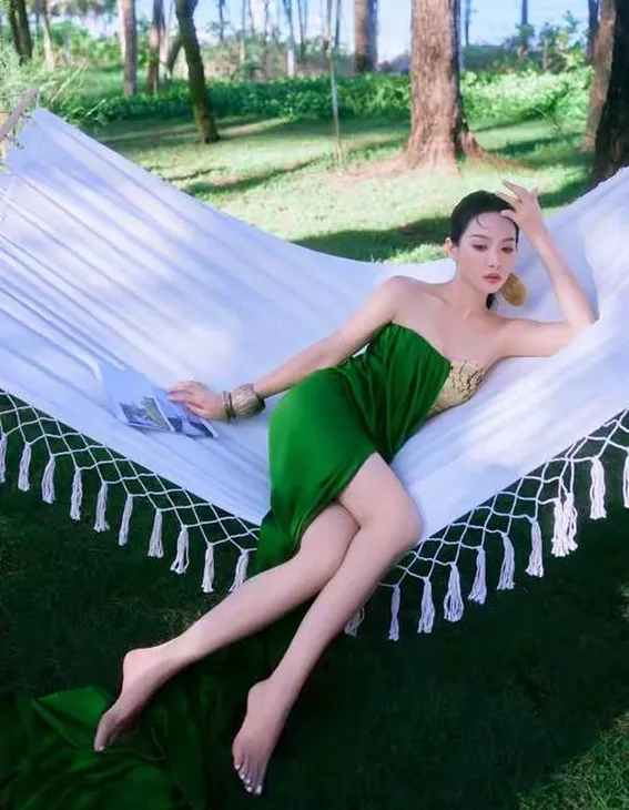 海边那组绿裙大片,直接把热搜给“炸”了。