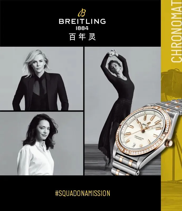 瑞士著名腕表品牌百年灵BREITLING查理兹·塞隆、姚晨,还有同样在芭蕾舞领域尽情绽放的舞蹈演员米斯蒂·科普兰,这三位在各自领域均表现卓越的人生“大女主”聚到了一起,组成了百年灵“聚光灯行动队”,为全新百年灵机械计时女士腕表(Chronomat Lady)倾情代言。