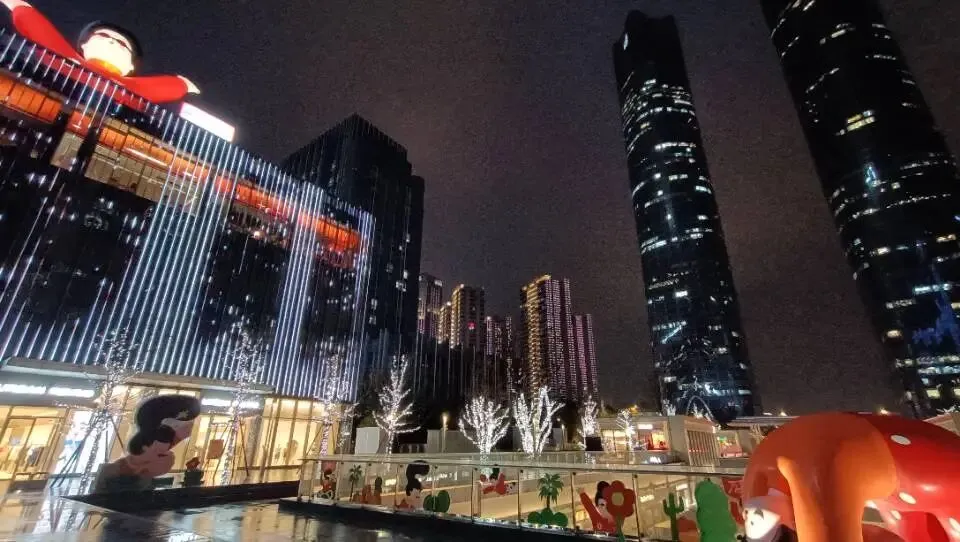 南昌红谷滩万象天地是华中地区首座万象天地,位于红谷滩CBD,接驳地铁1/2号线,商业面积12万㎡。以"万象享趣公园+超级盒子+购物中心"三位一体布局,引入90余家首进品牌,融合猫和老鼠等IP展,打造城市社交新地标。笔者初次到访,着实被震撼不已,配合旁边绿地双子塔的夜景,仿佛来到了时尚大都市。