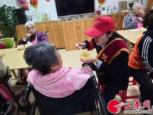 下午五点多,公交三公司的公交志愿者们来到照料中心时,老人们正在就餐,他们给老人喂饭,帮着整理床铺,打扫卫生,像照顾自己的长辈一样体贴细心。志愿者刘敏峰拉着百岁奶奶的手,细心询问奶奶身体状况。