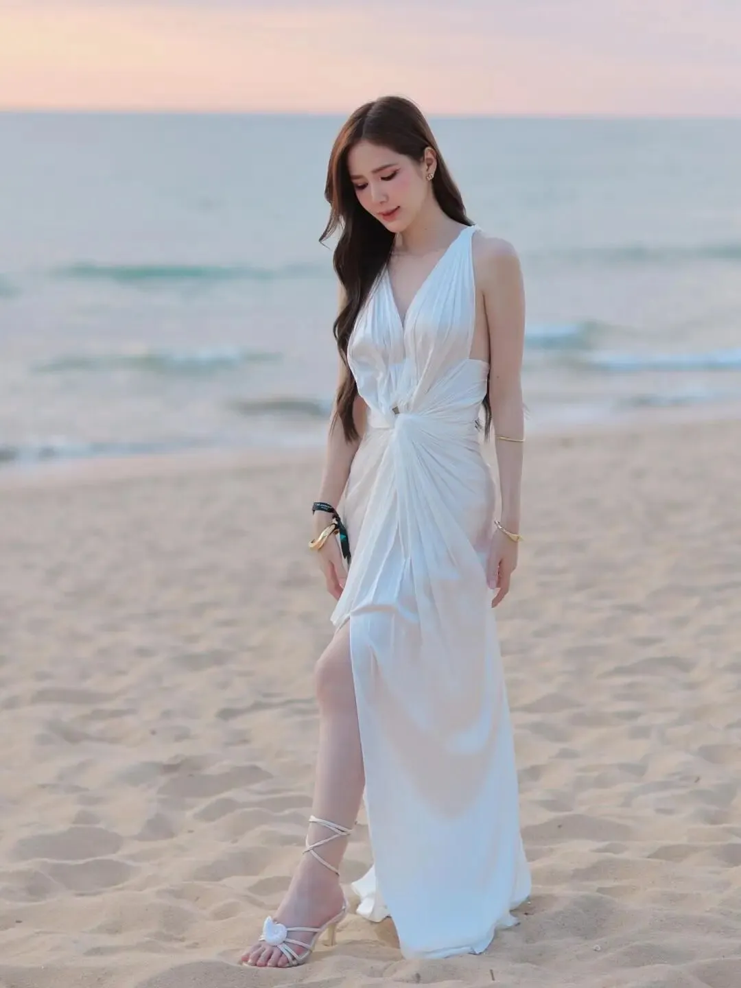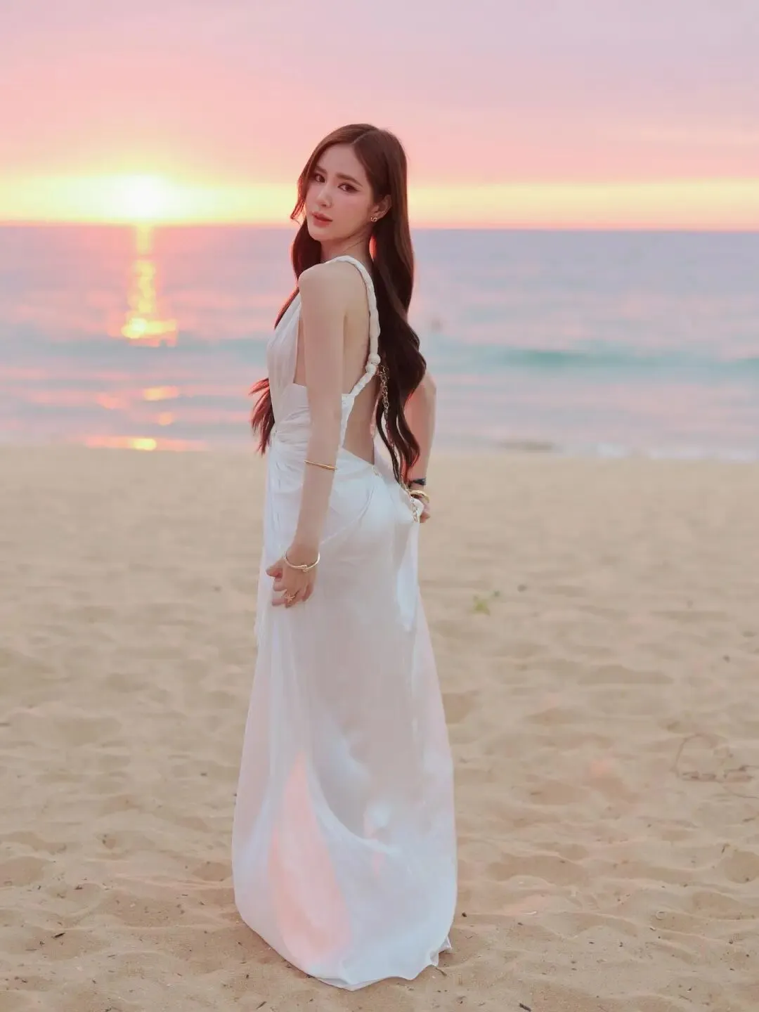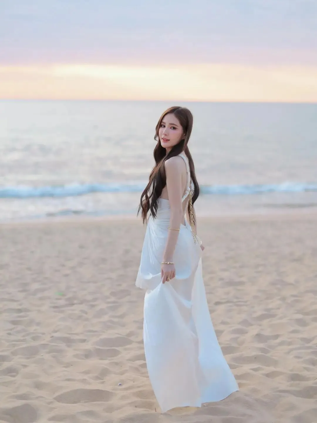 当前位置:首页>美女资讯>海风轻抚白裙,超美模特深V侧影惊艳了整片暮色沙滩