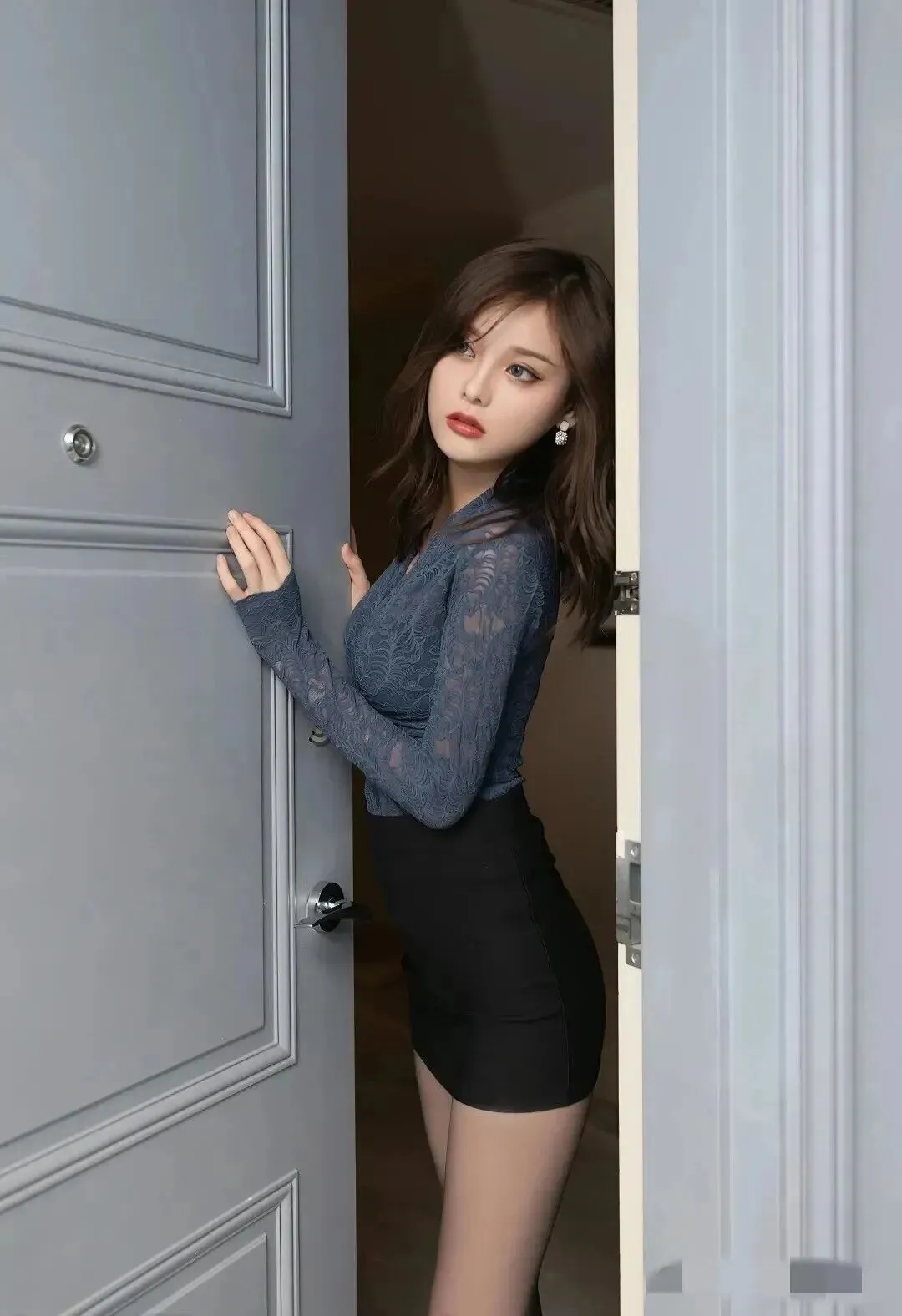 当前位置:首页>美女资讯>“姐姐感”穿搭范本:灰蓝蕾丝衫的褶皱设计,黑短裙+透肤袜踩中审美点