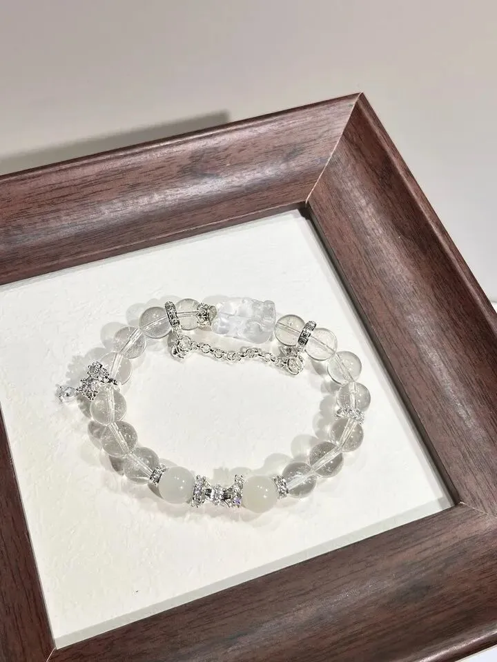 最贴心的是原创定制服务。可以根据自己的手腕粗细调整链长,避免了过松滑落或过紧束缚的尴尬;如果喜欢低调内敛,还能减少多余的配饰点缀,让水晶的天然质感成为主角;若是偏爱精致感,也能添加小巧的银饰配件,让手链更具个人特色。这种定制化的用心,让每一款手链都成为独一无二的存在。