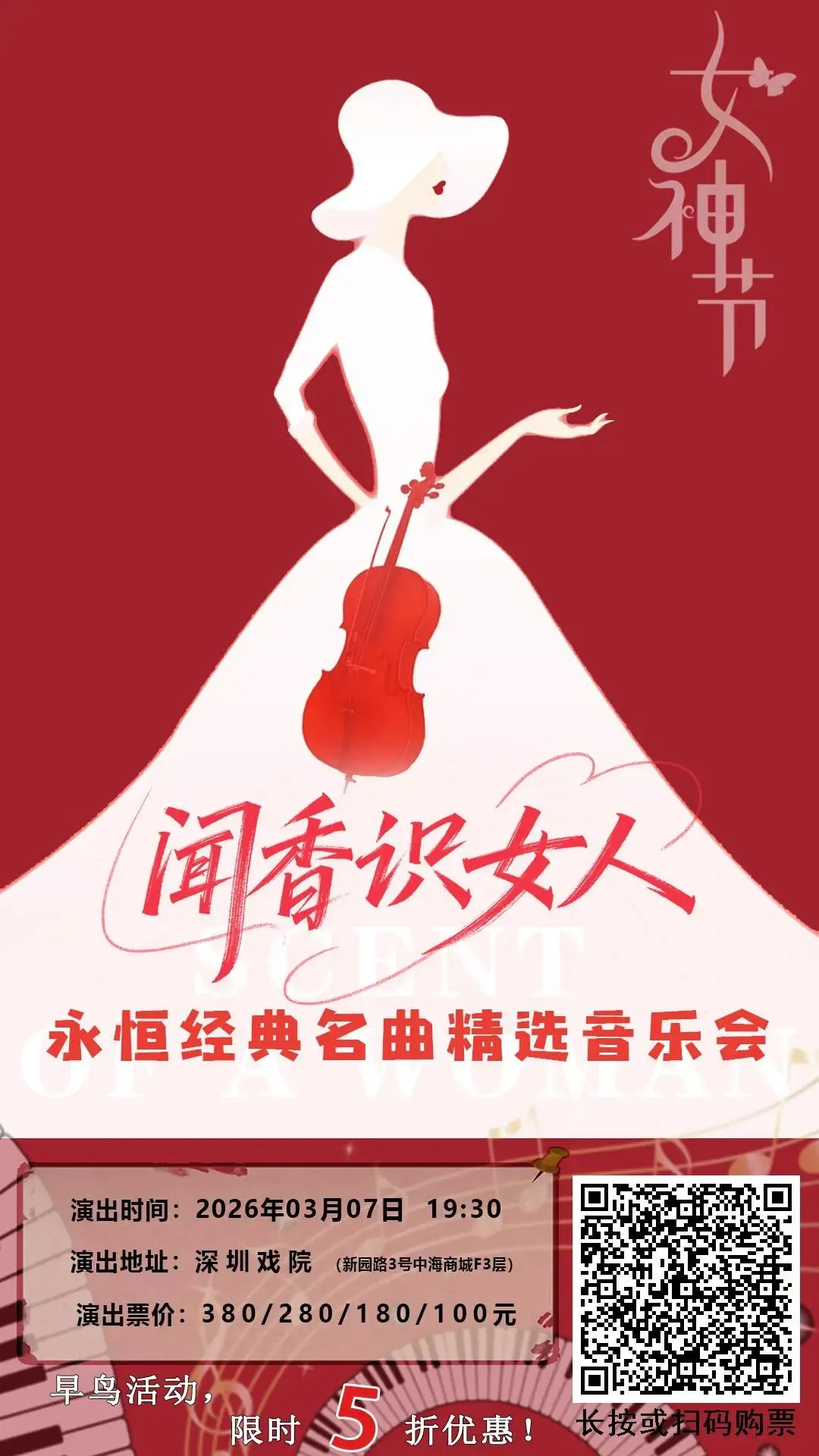 当前位置:首页>美女资讯>「女神节专场」永恒经典名曲精选音乐会《闻香识女人》-深圳站