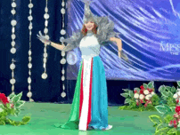 比赛那天,她就是穿着这身国旗的颜色,在舞台上跳了一段花剌子模传统舞蹈。
