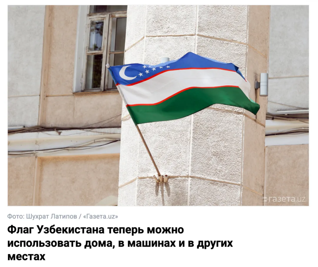 据gazeta.uz报道2023年7月,乌兹别克斯坦出台新规,明确放宽了国旗使用的范围