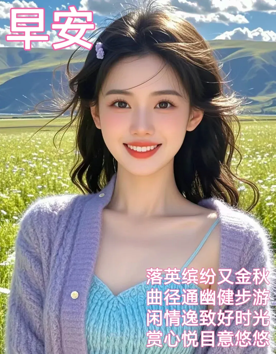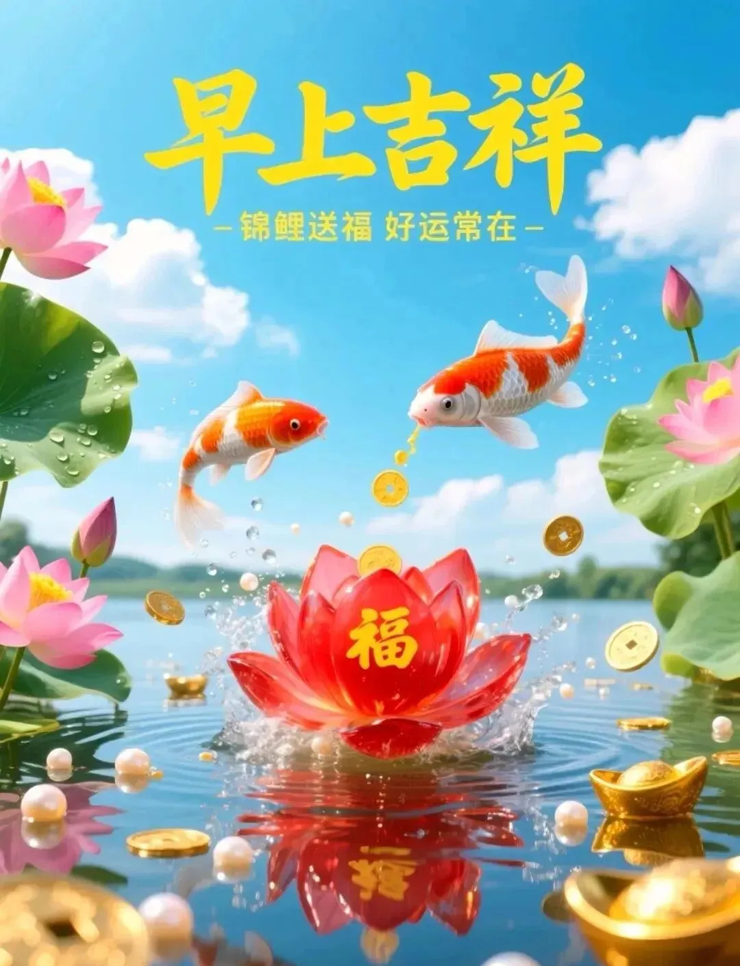 清晨到,祝你心情舒畅身体好;曙光来,祝你事业有成发大财;微风临,祝你幸福美满家温馨;问个好,祝你吉星高照祥云绕。早上好!🌹💯🍅🌺🏝️🎉