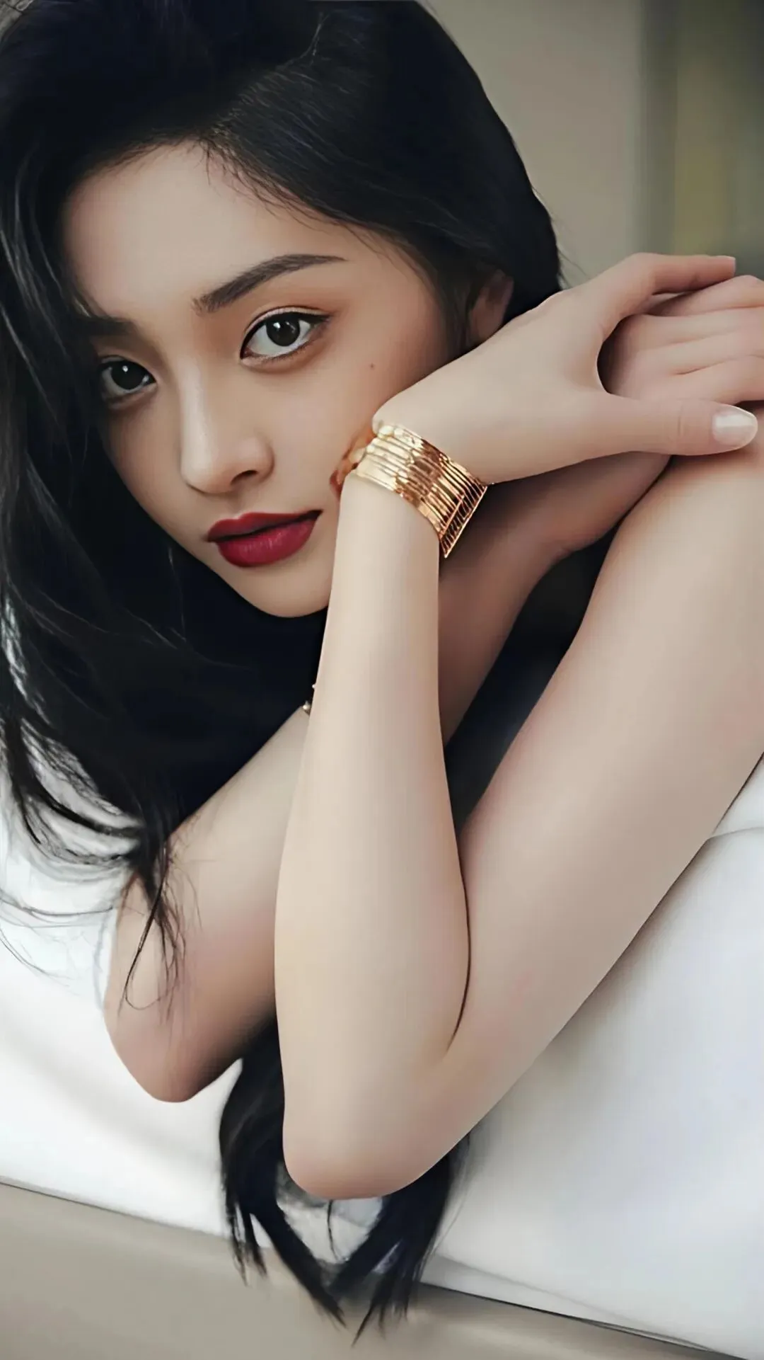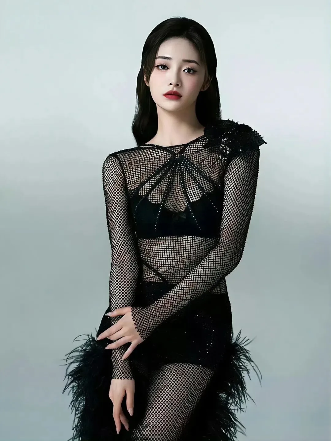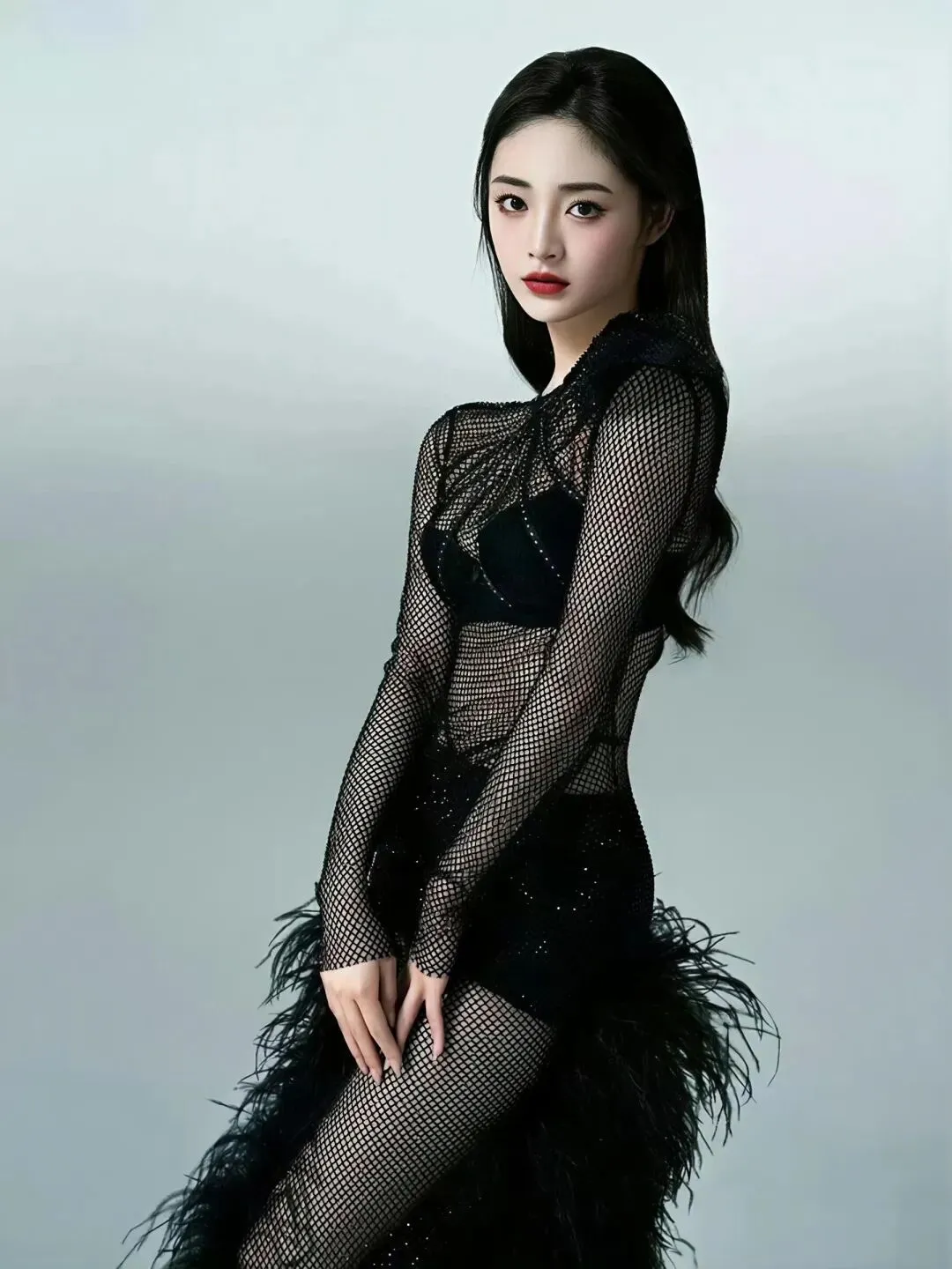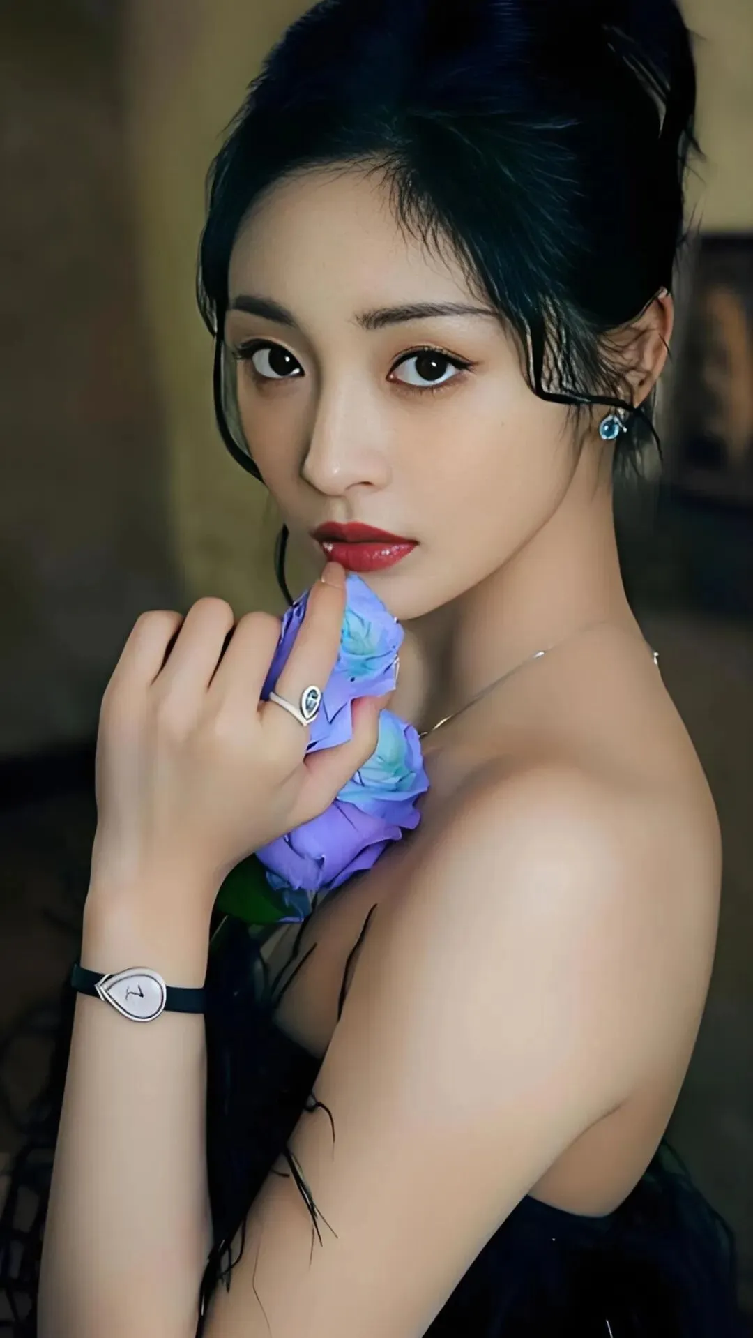 周洁琼的写真在色彩运用上极具勇气和表现力。她曾以“绿眸红唇”的妆容搭配玫瑰红缎面礼裙,祖母绿与正红色的冷热碰撞,塑造出兼具异域风情与东方温婉的惊艳形象,展现了其驾驭高难度色彩的非凡能力。