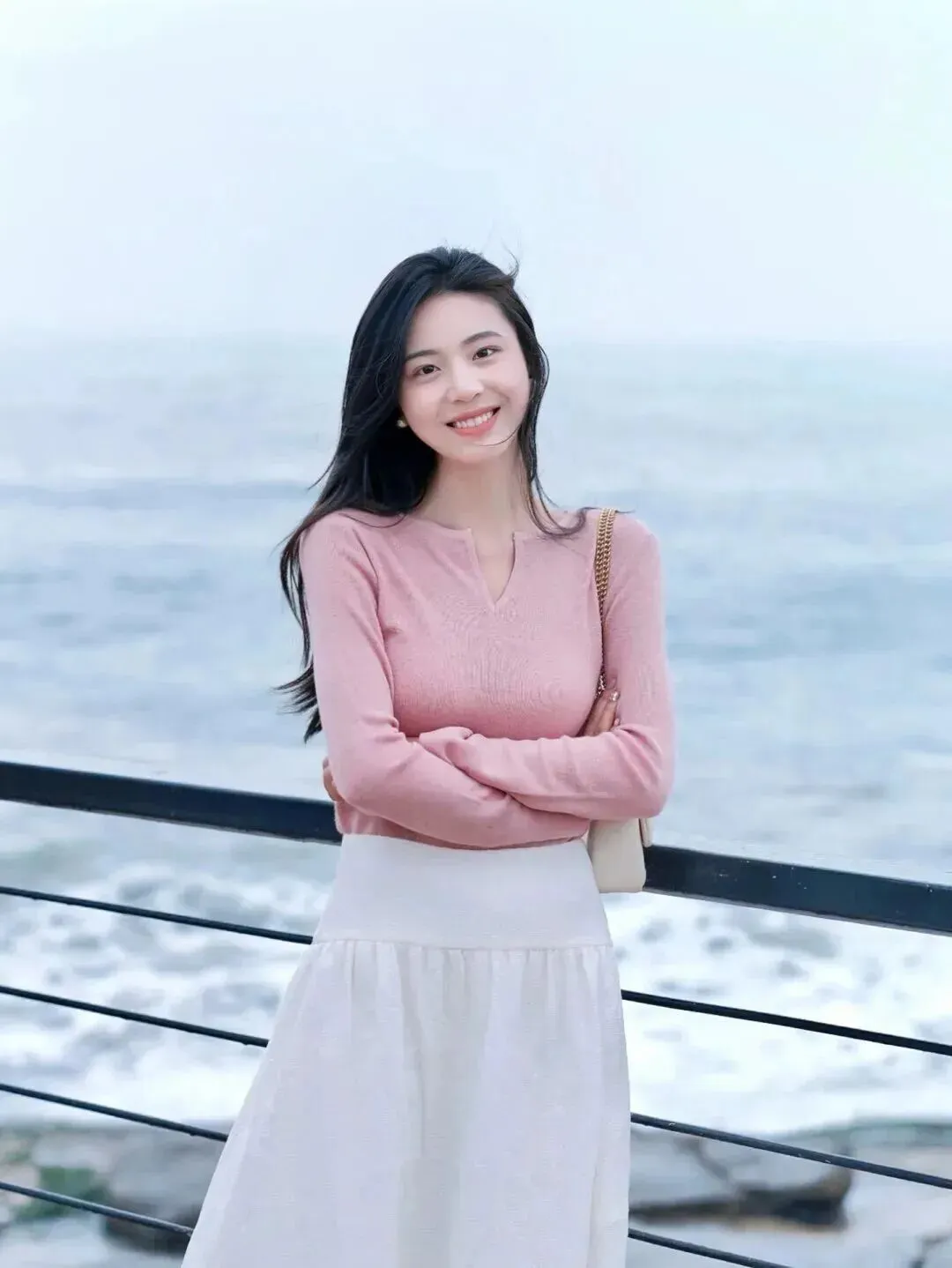 .到这.组海边照片.的时候,一.下子就被.吸引住了.。阳光那么.好,海.水蓝.得透.亮,而最.戳人.的还.是那身浅.粉配白.的穿搭。整.个人.往海边.一站.,温柔.气息就透.出来了,.好像下一.秒就要演起.韩剧。