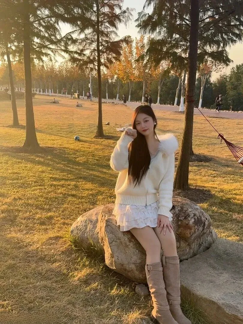 记得那天.在公.园草坪上.坐着看书,.过膝.靴的.靴筒堆.在小腿处,.反而.有种随性的.好看。.有个.小姑娘跑过.来问我裙.子在哪.里买的.,说她.妈妈也.想买一条.