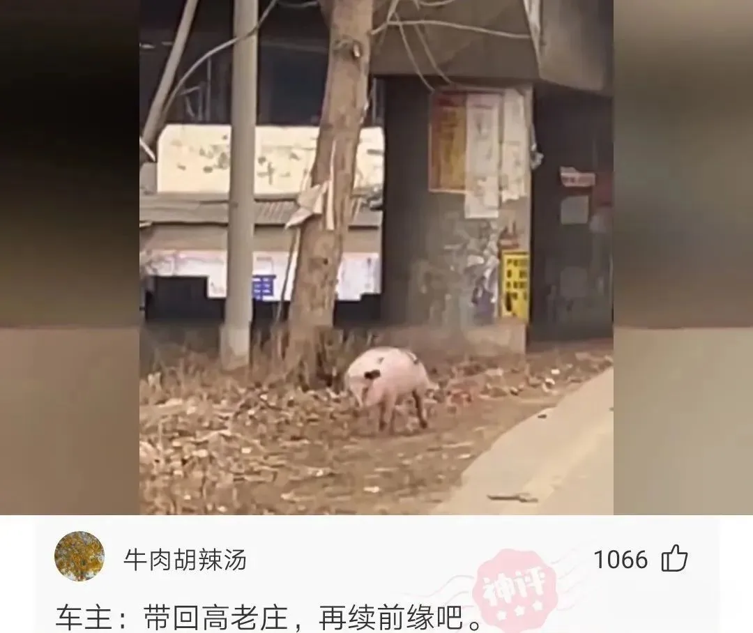 出来玩看到这头猪从车上摔下来,车主跑没影、怎么办啊家人们,我捡走犯不犯法啊?