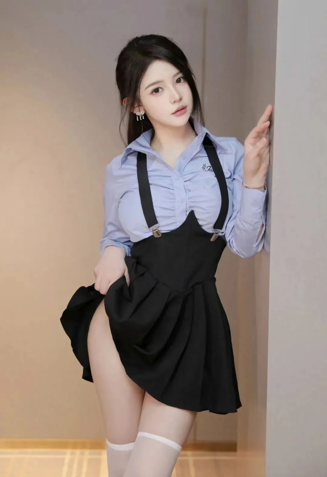 当前位置:首页>美女资讯>美女模特、爱酱里|性感蓝色T配上黑色吊带短裙露白丝袜展现完美身材