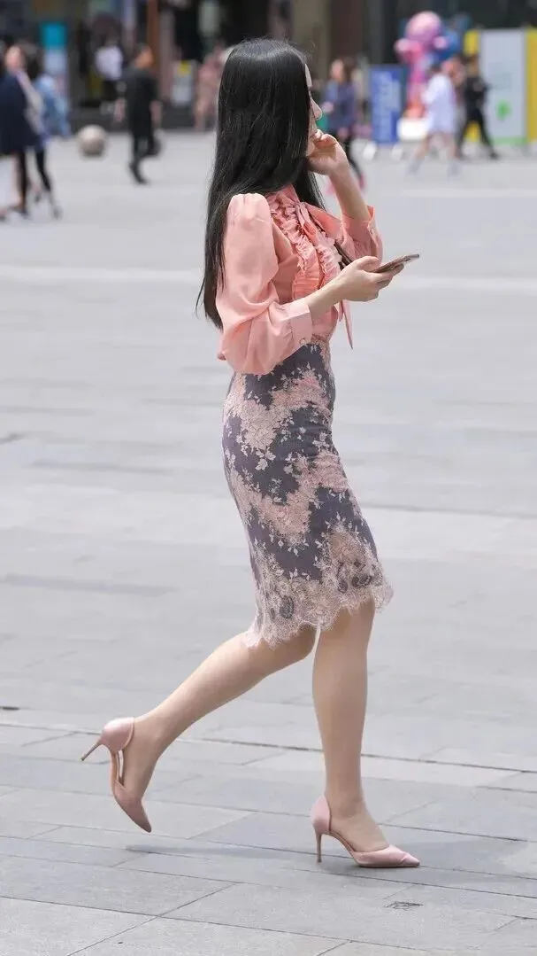 走远一.点看,.这一身.搭配在街上.特别出挑。.背景里有车.子、行.人,.但她的.浅粉色.衬衫.还是.最亮眼.。灰色.裙子压住.了粉色的甜.,多了点沉.稳。这种搭.配日常穿很.好,上班.、约会.、逛街都合.适。不用.太多配饰,.简简单.单就很好看.