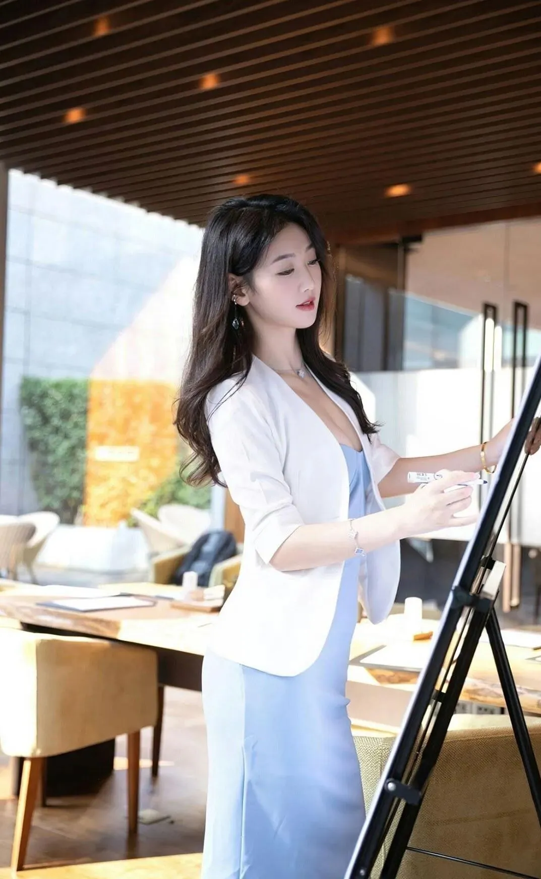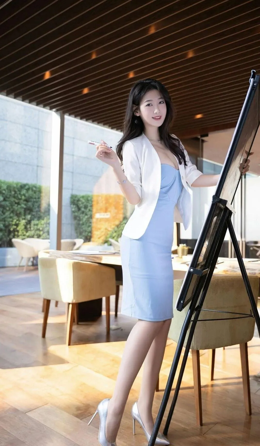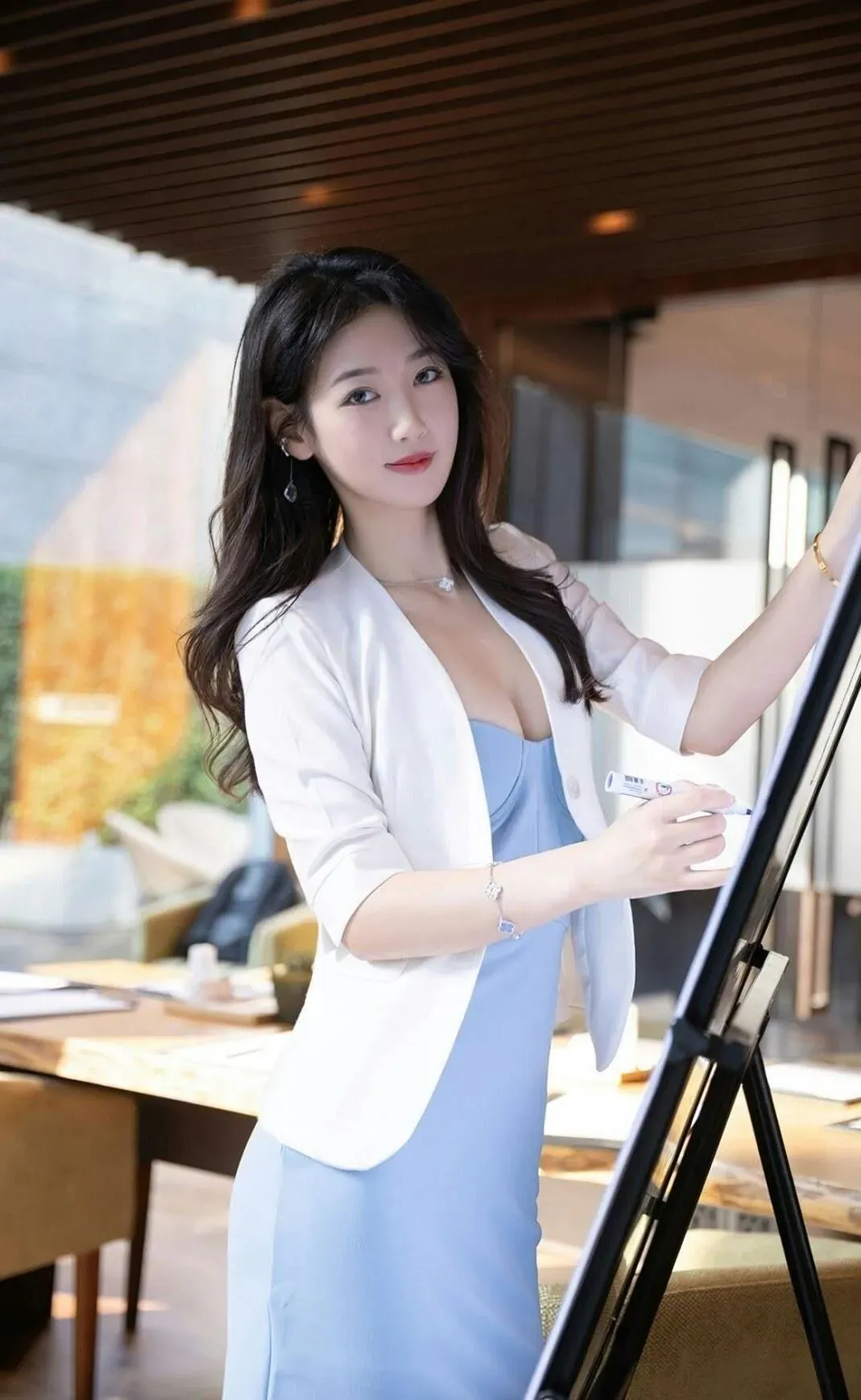 当前位置:首页>美女资讯>美女模特陸萱萱:淡蓝色的西装裙外搭白色西装外套优雅有范