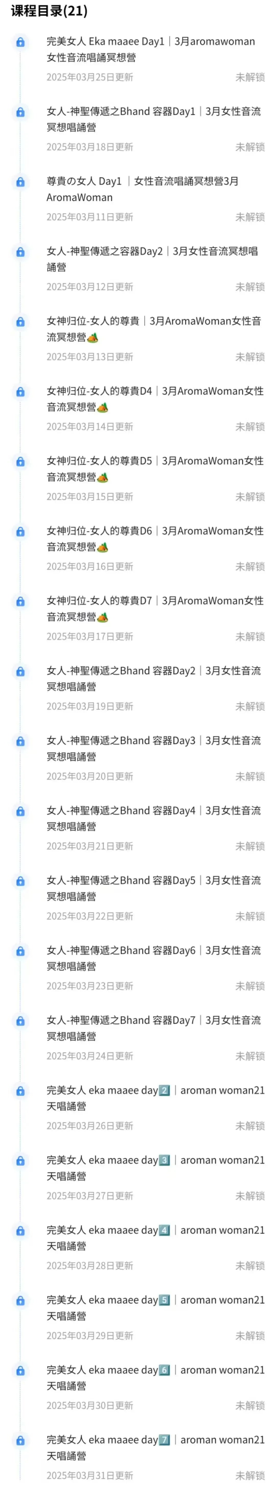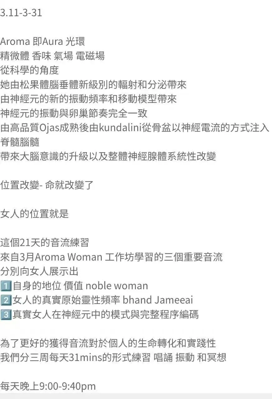 当前位置:首页>美女资讯>女神归位Aroma Woman 21天女性‬音流冥想营