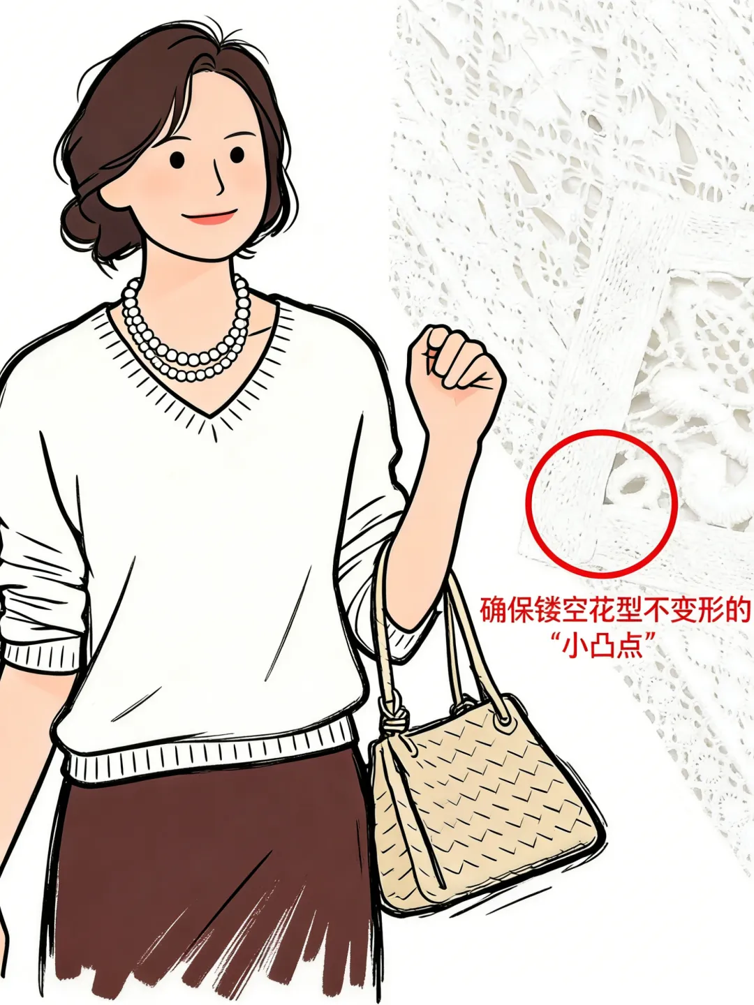 第一看成分,人丝线和棉线混纺的一般比较好。摸工艺,好的蕾丝在花纹连接的地方有微小的凸起。是为了更牢固,不是质量问题。
