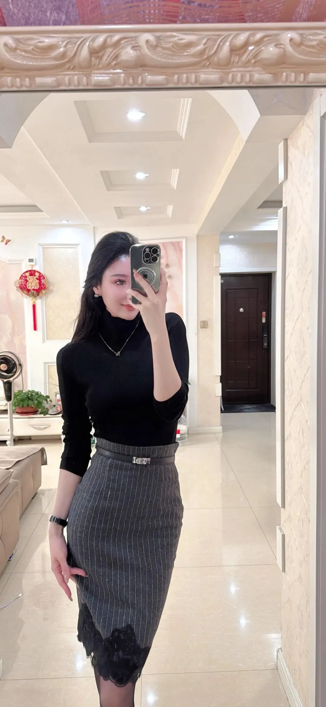 当前位置:首页>美女资讯>高领针织 + 蕾丝条纹裙,秋冬优雅气质封神