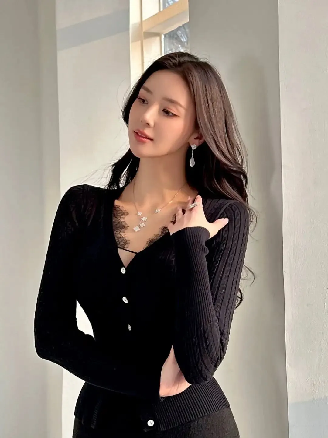 当前位置:首页>美女资讯>黑色蕾丝针织裙拍照,4 个温柔松弛姿势,氛围感拉满又显瘦,谁拍谁好看