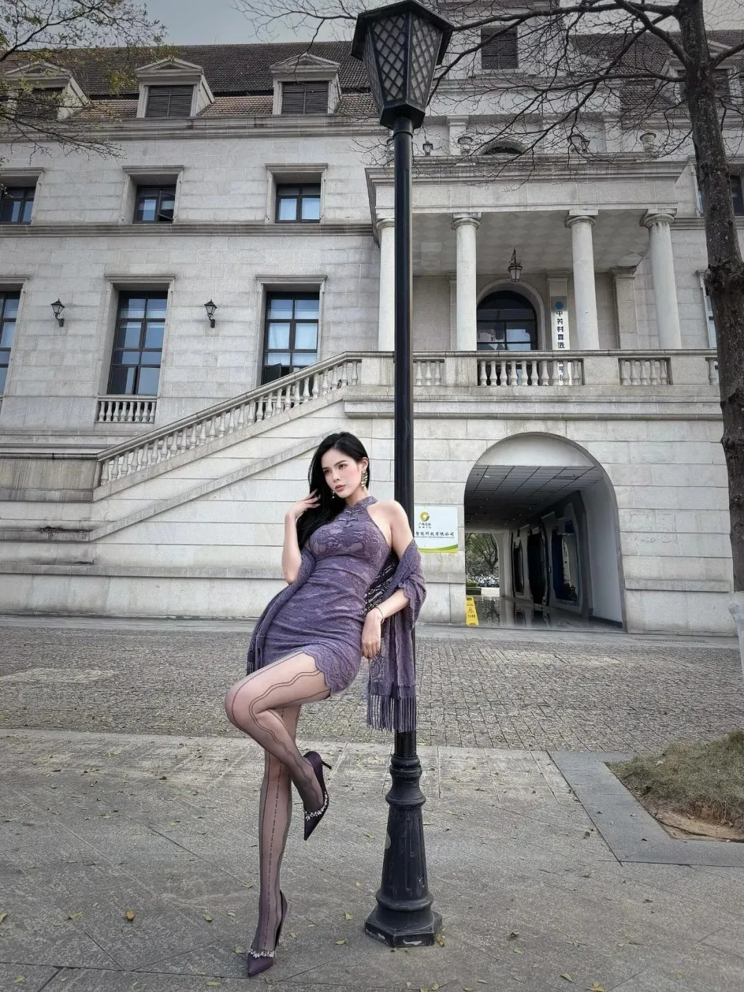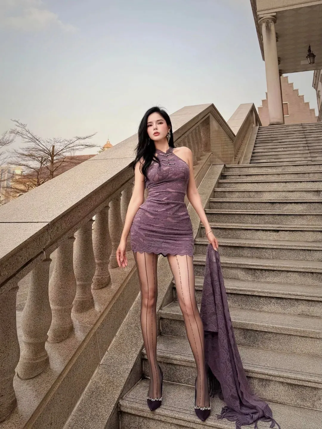 当前位置:首页>美女资讯>颜值穿搭:“紫色蕾丝连衣裙+电波袜+紫高跟”,紫色真的很有韵味