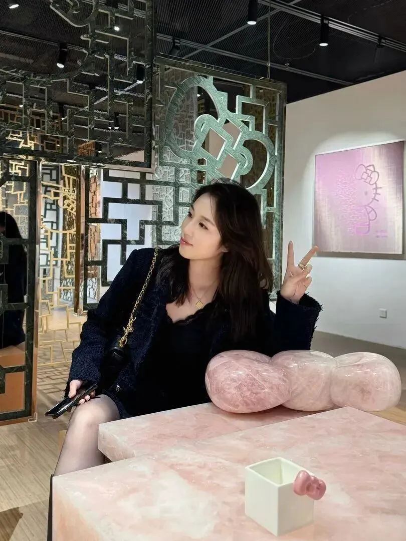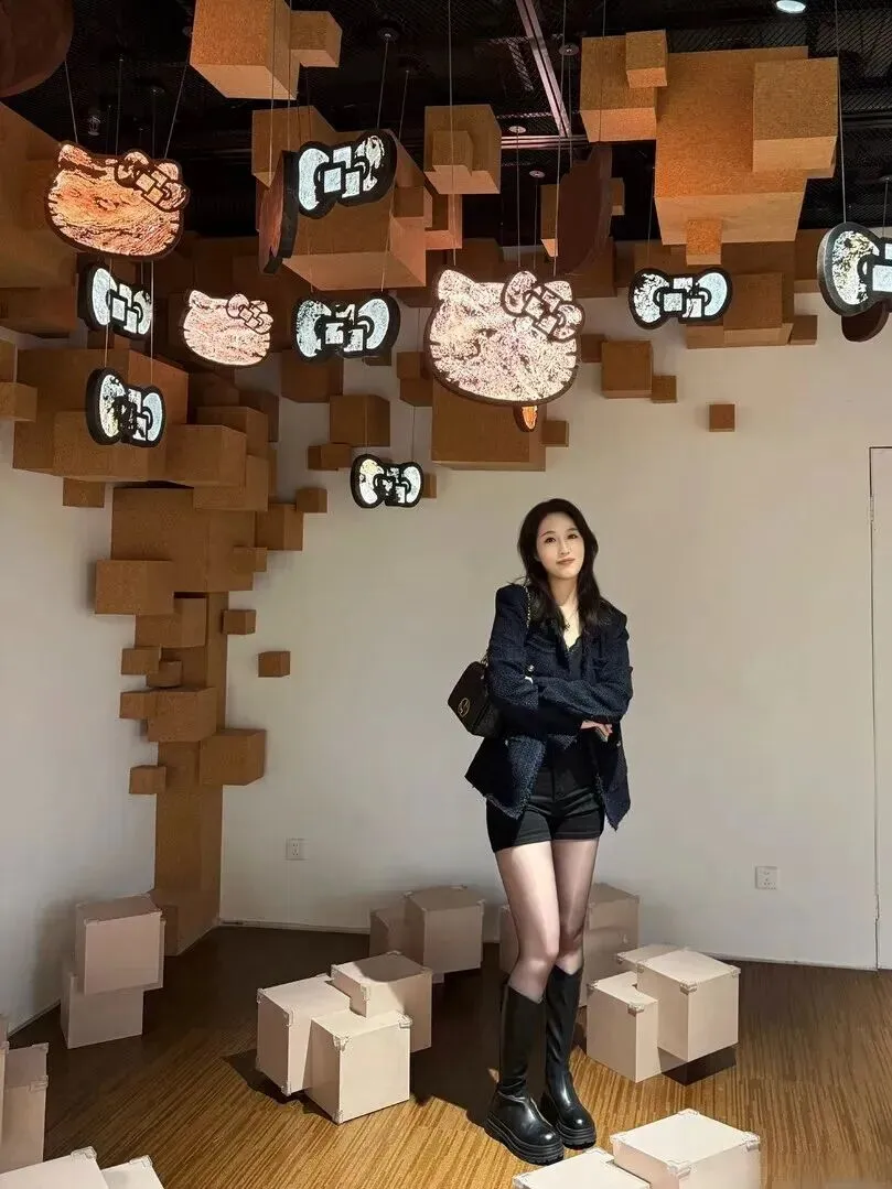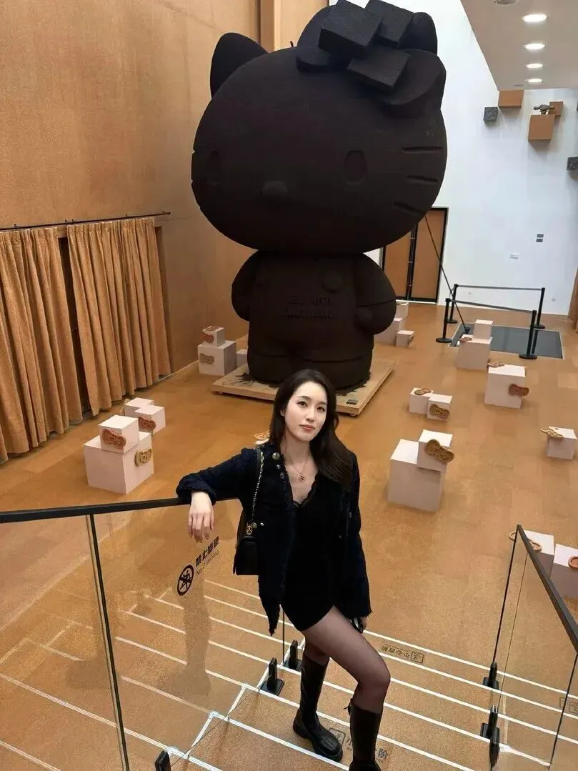 旁边.放一只黑色.Hel.lo K.it.ty.装饰,整身.搭配俏.皮了.不少。
