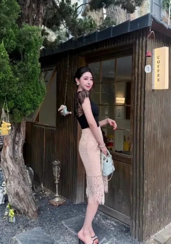 刷到这套轻熟风穿搭时,瞬间就被狠狠戳中 —— 这才是职场人想要的 “刚柔并济” 通勤范本,说不心动绝对是假话!画面里的女生头发优雅盘起,露出修长的脖颈,仪态从容舒展,不管是坐在复古木质咖啡馆的藤编椅上,还是站在户外小木屋咖啡馆的门前,每一个姿态都透着松弛的高级感。身上的黑色 V 领蕾丝上衣,精致的蕾丝短袖和深 V 设计,在干练中添了几分柔美元素,又不会显得浮夸;下身的米白色蕾丝开叉半裙,刚好卡在小腿中部,开叉设计完美勾勒出纤细的腿部线条,显腿型效果拉满,脚上的细高跟凉拖利落精致,踩在木质地板上带着从容的节奏感。场景是充满氛围感的复古咖啡馆,室内的木质货架摆着陶瓷碗碟,暖黄的灯光柔和温馨,户外的小木屋被绿植环绕,门口的小摆件透着烟火气,像是刚结束一上午的职场会议,正享受片刻的通勤休闲时光,每一张图都自带故事感。