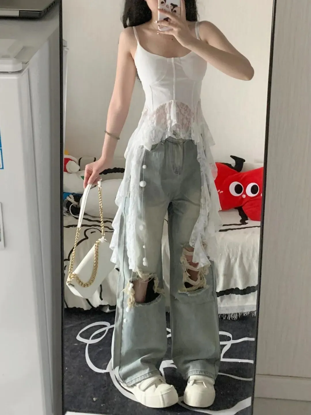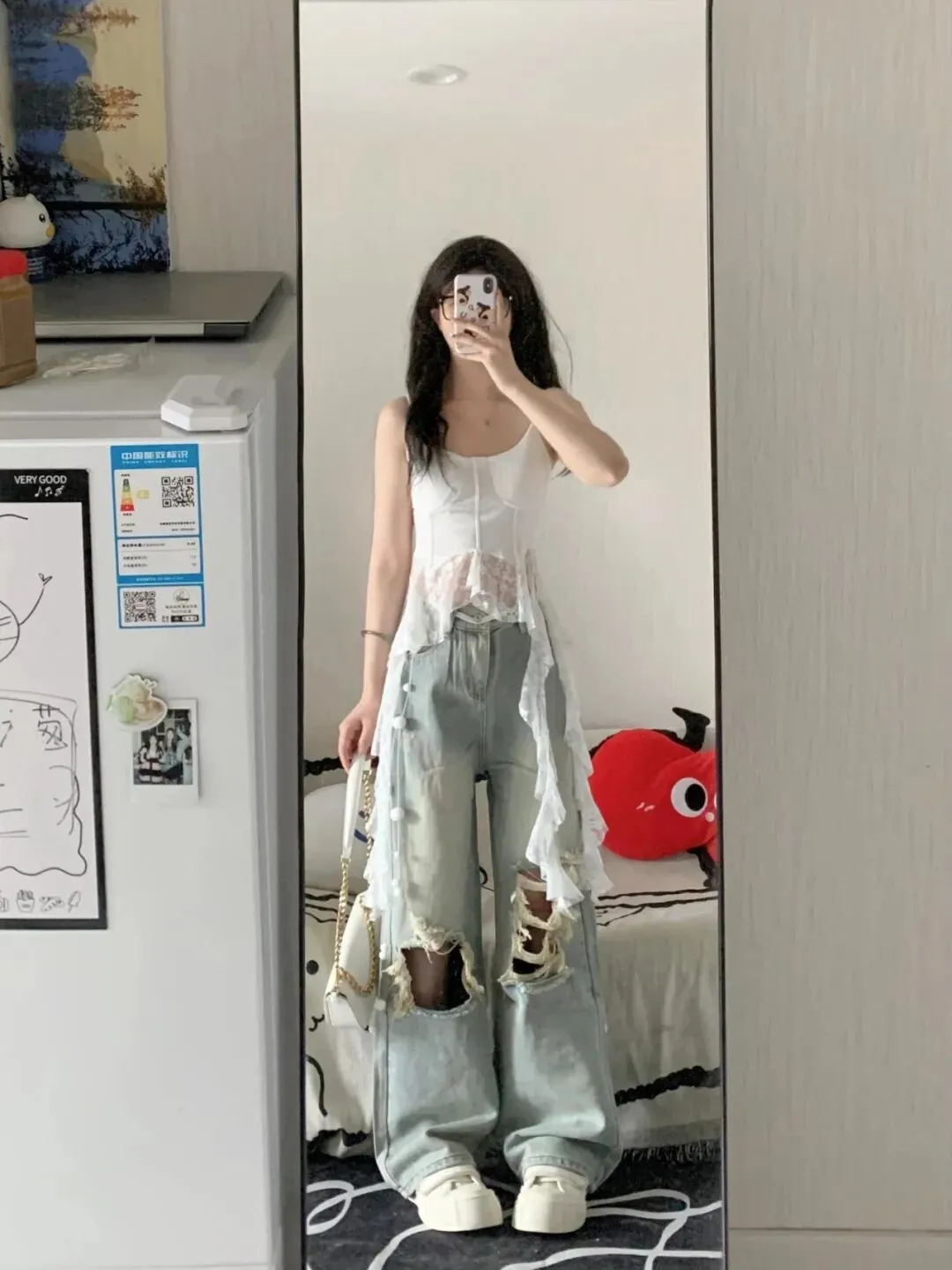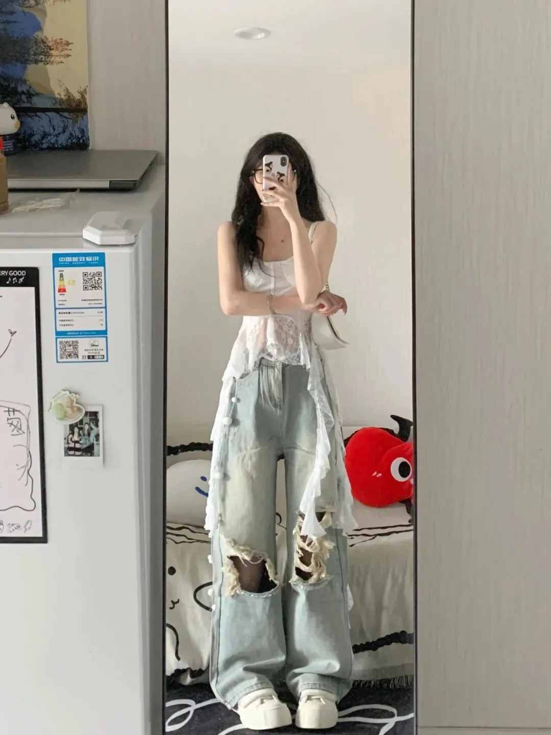 当前位置:首页>美女资讯>甜酷蕾丝破洞牛仔穿搭