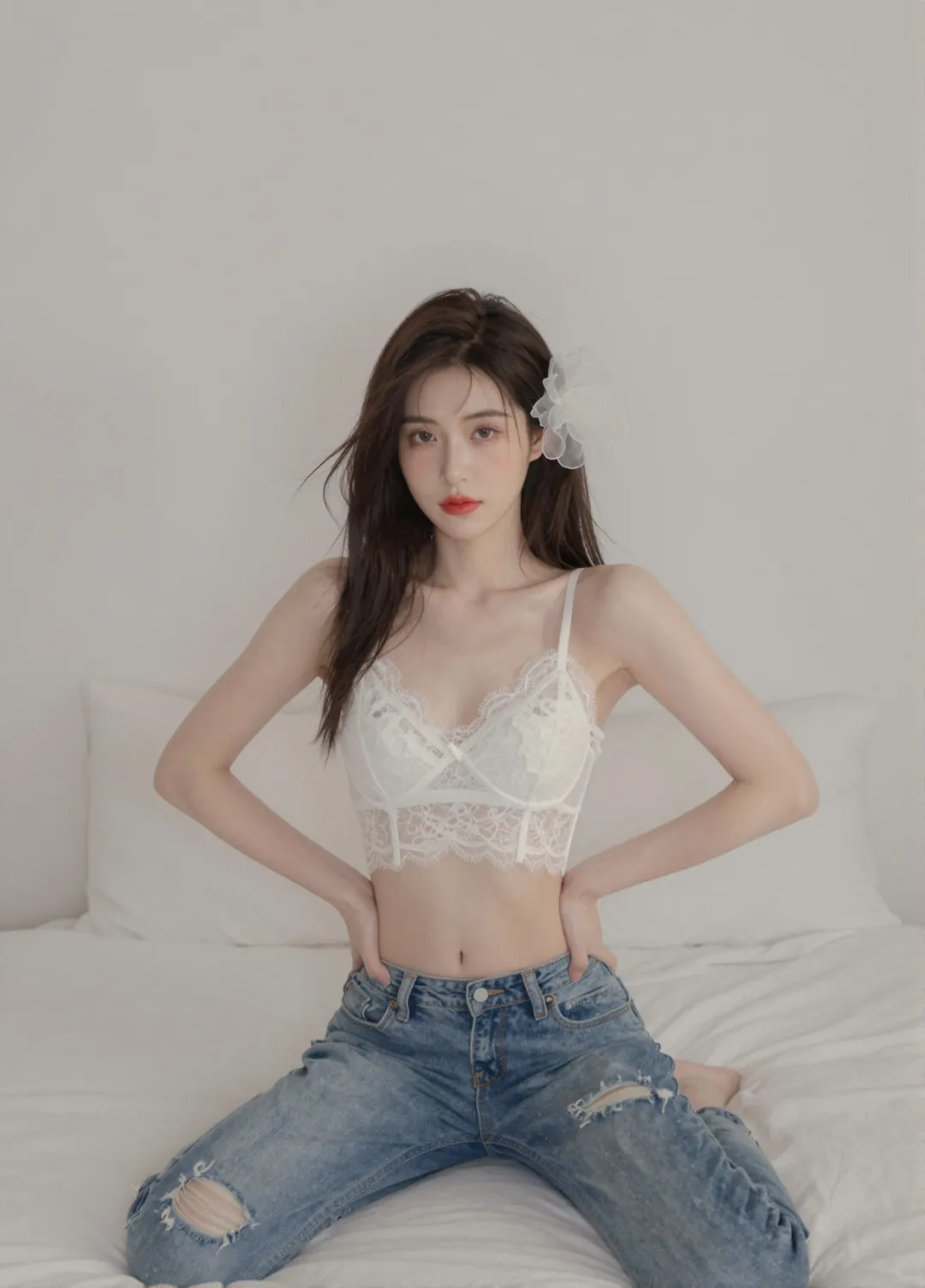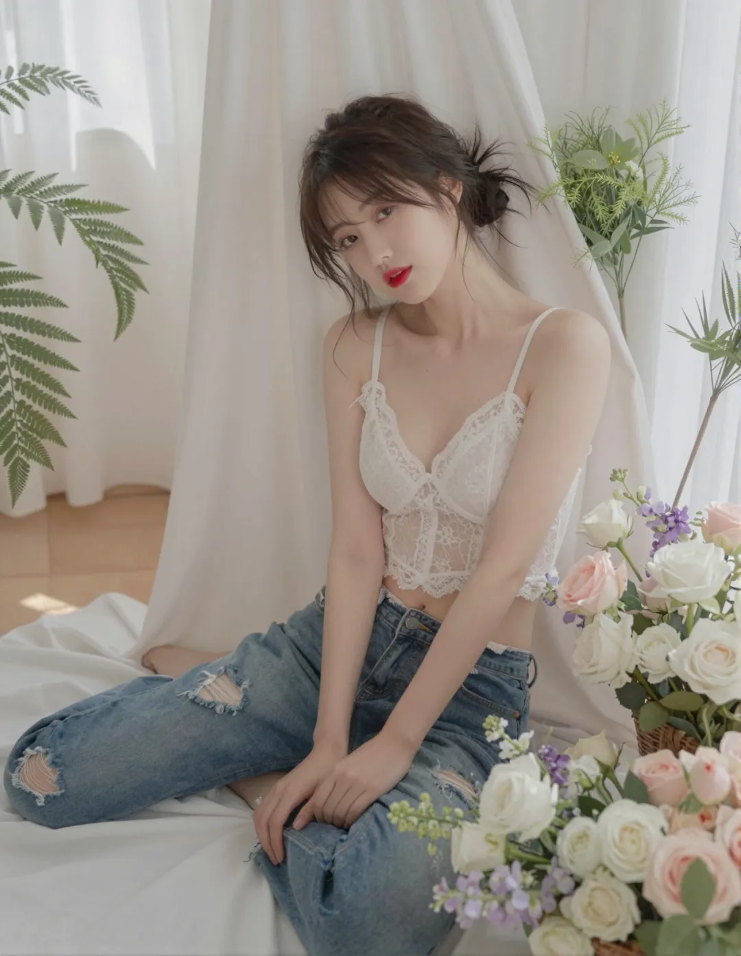 当前位置:首页>美女资讯>白蕾丝吊带破洞牛仔,红唇甜度满分