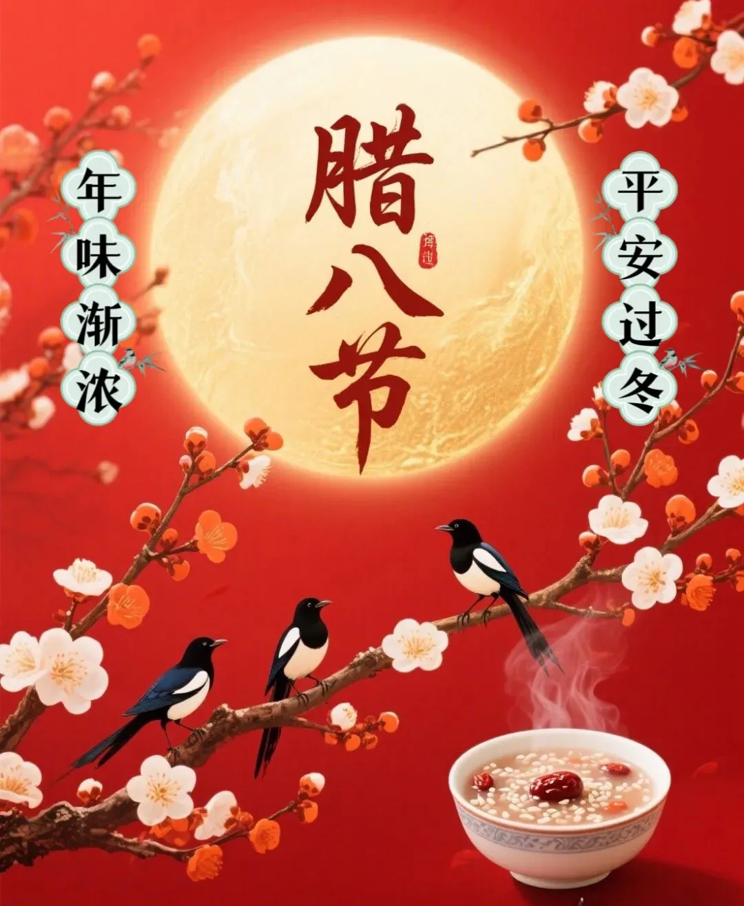💐腊八腊八,好运发发💖,事业扬帆绽繁花,爱情甜蜜沐韶华;腊八腊八,岁岁美美☘,家宅安康多顺遂,生活缤纷皆胜意;腊八腊八,粥暖情长💓,不寄粥碗寄衷肠,愿你富贵美满,岁岁久长!腊八节快乐!🎄
