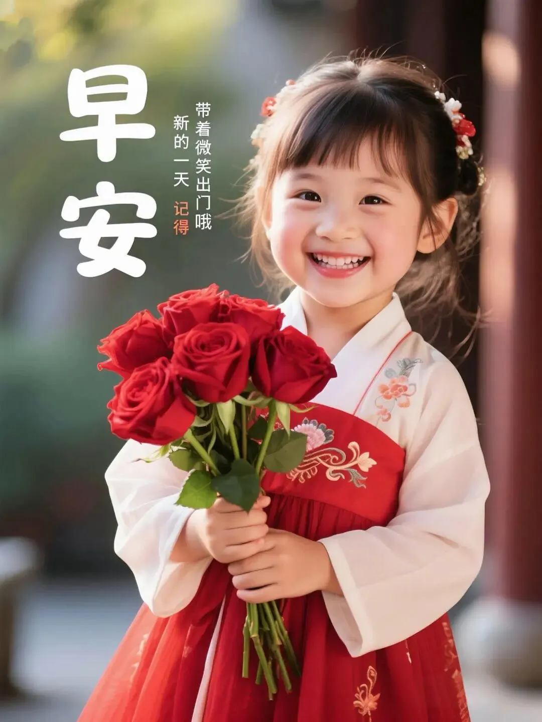 日子常新,生活常暖,在每一个清晨,送一份安康,道一声早安,愿你晨起有微笑,笑里有幸福。早上好!🌹😊❤️🙏☀️🎉