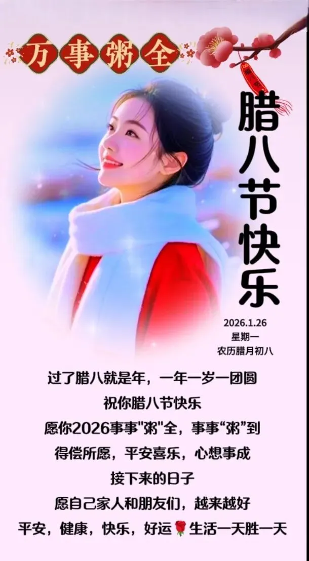 当前位置:首页>美女资讯>2026年1月26日腊八早安祝福图片,精选美女祝福图片